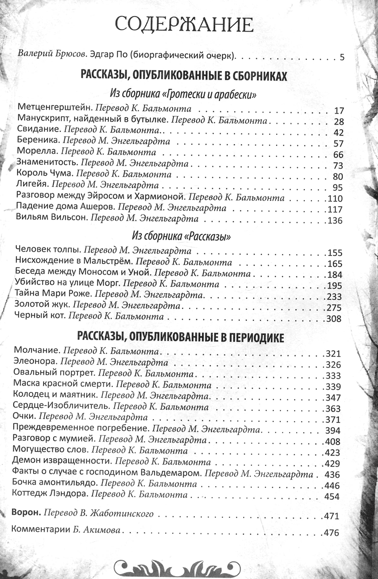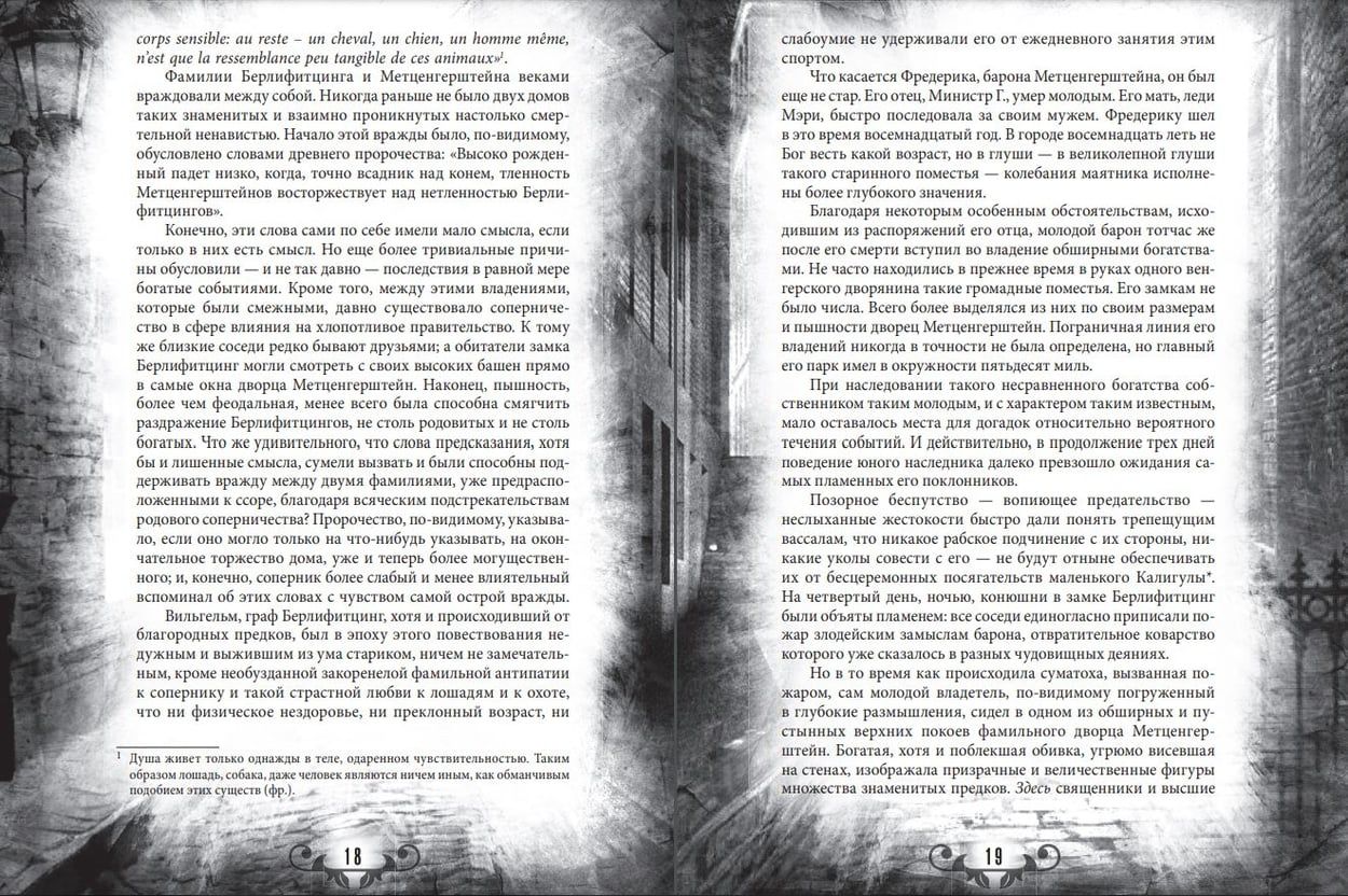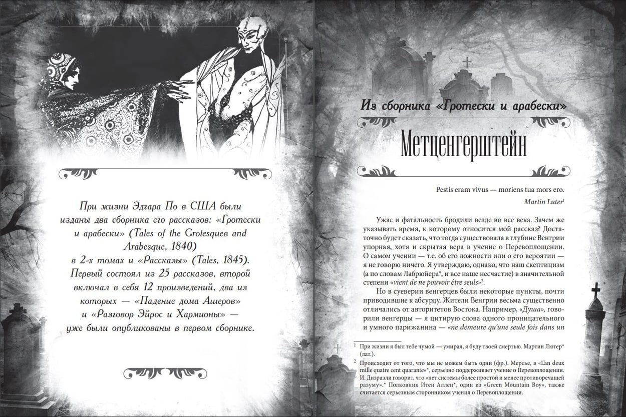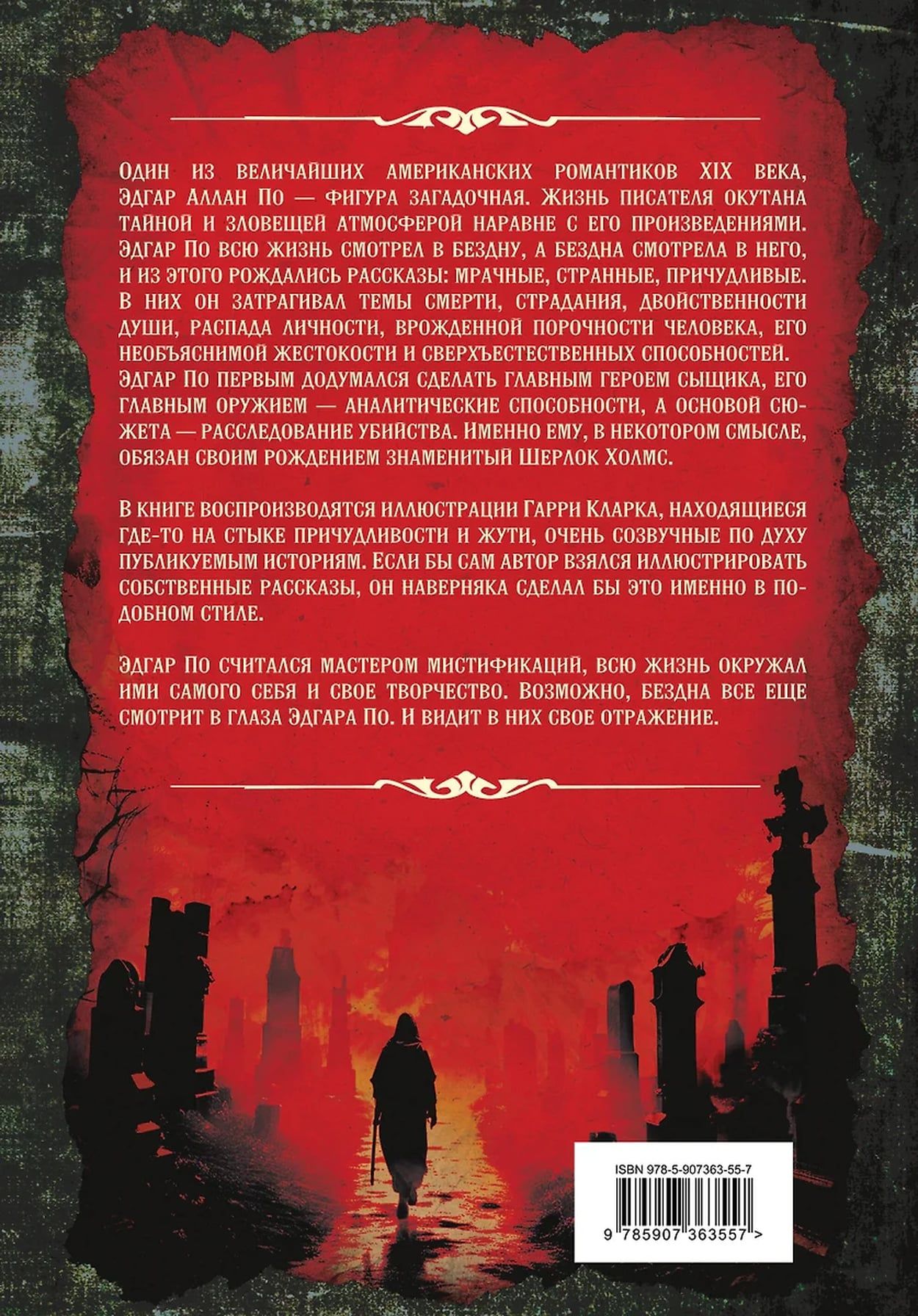 The collector's illustrated edition includes the best works of Edgar Poe - psychological, detective, mystical. Mysterious stories in which it is difficult to draw the line between reality and fiction, and horror suppresses all other feelings. These stories are fascinating and make you believe in the supernatural. One of the greatest American romantics of the 19th century, Edgar Allan Poe is an enigmatic figure. The writer's life is shrouded in mystery and an ominous atmosphere on par with his works. Edgar Poe looked into the abyss all his life, and the abyss looked back at him, and from this were born stories: dark, strange, bizarre. In them, he touched on the themes of death, suffering, duality of the soul, disintegration of personality, the innate depravity of man, his inexplicable cruelty and supernatural abilities. Edgar Poe was the first to come up with the idea of making a detective the main character, his main weapon - analytical skills, and the basis of the plot - the investigation of a murder. It is to him that the famous Sherlock Holmes owes his birth.