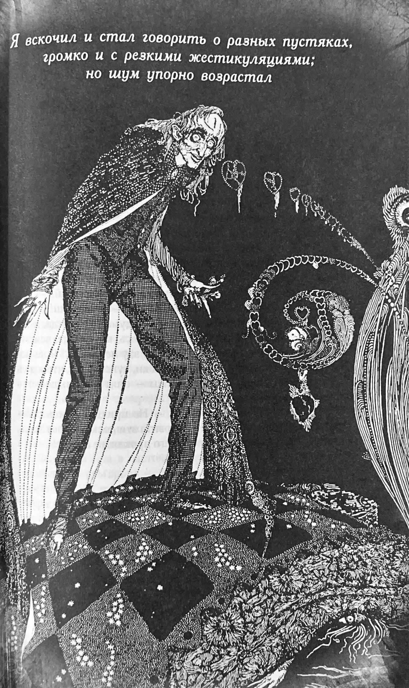 The book reproduces illustrations by Harry Clarke, which are somewhere on the border between bizarre and creepy, very much in tune with the spirit of the published stories. If the author himself had undertaken to illustrate his own stories, he would certainly have done so in a similar style.