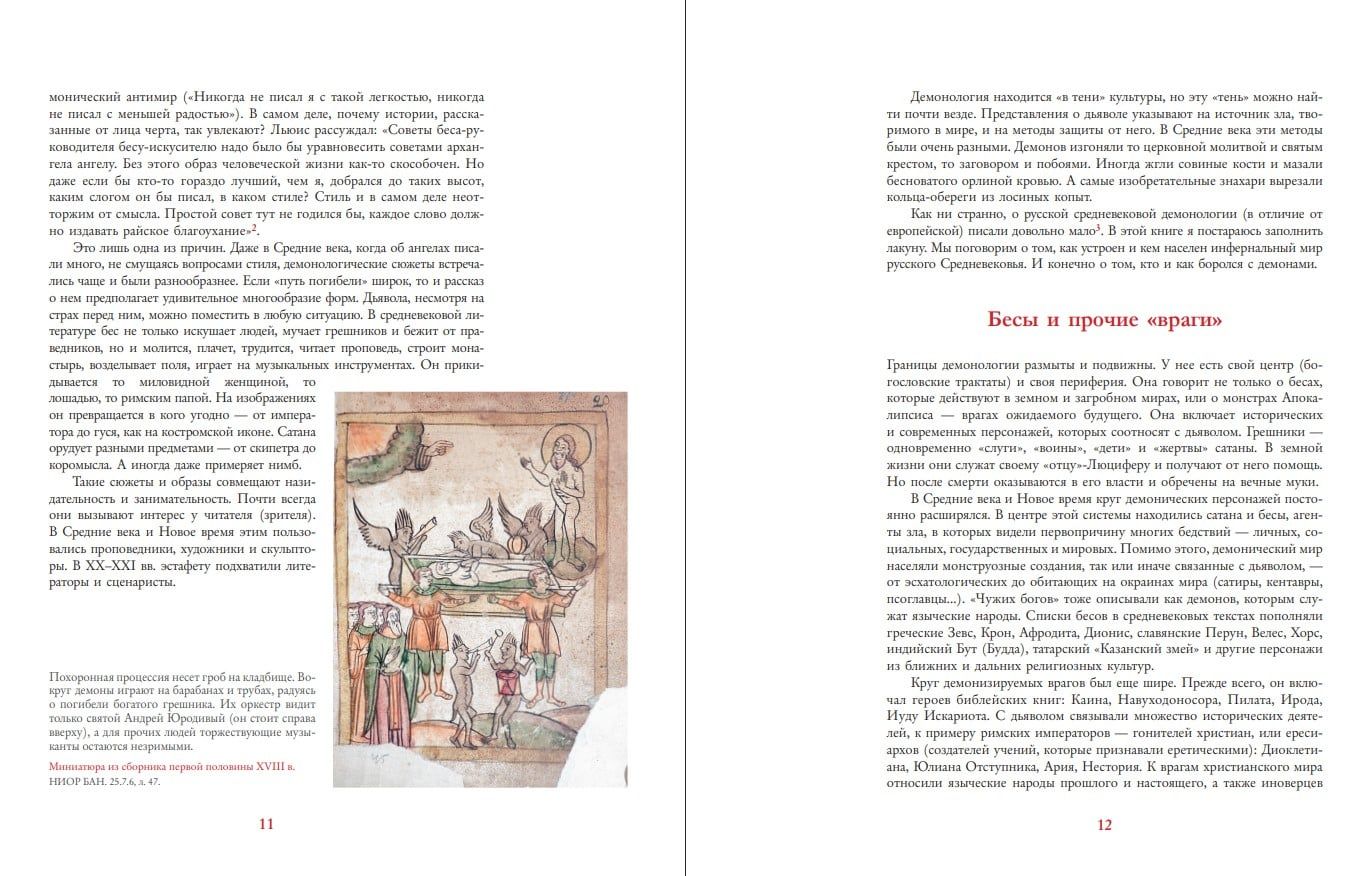 Old Russian texts are replete with stories of diabolical machinations and demonic creatures inhabiting both the earth and the underworld. Demons and hybrid monsters were depicted in icons, frescoes, and miniatures. Demonological themes played many roles: they explained the causes of disasters, illustrated biblical and hagiographic texts, helped describe "enemies" or demonize opponents. For centuries, these themes and images gave free rein to the imagination and were imbued with the most unusual details. A new book by historian Dmitry Antonov is the first to explore Old Russian demonology as an entire system of ideas. It examines literature, iconography, and folklore, and how ideas about fallen angels and their earthly "agents" developed and changed in Rus'. The book will be of interest to both humanities scholars (historians, folklorists, cultural scientists, philologists) and a wide range of readers.