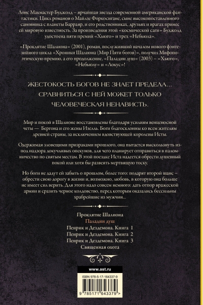 Peace and quiet have been restored in Chalion thanks to the efforts of the royal couple Bergon and his wife Iselle. The gods are kind to all the inhabitants of the ancient country, with the exception of the widowed queen Ista. Obsessed with the sinister ghosts of the past, she is trying to slip out from under the supervision of her annoying guardians, for which she plans to go on a pilgrimage to holy places. On this trip, Ista hopes to find peace of mind or at least dispel the deadening melancholy. But the gods will not let her forget about the past, moreover: they will give her a second chance - to find her path in life and, perhaps, love, in which she no longer has the strength to believe. For this, very little is needed: to repel the enemy army and defeat the black magic, before which the bravest of men were powerless ...