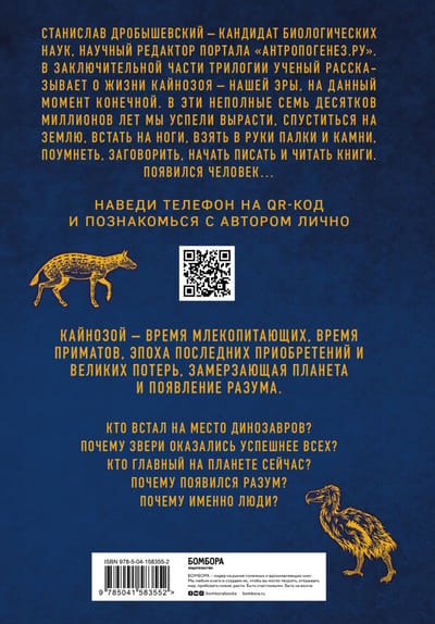 The final part of the trilogy "An Anthropologist's Paleontology" by renowned Russian science popularizer Stanislav Drobyshevsky will tell the story of the emergence of intelligence, how, in less than seventy million years, we grew up, descended to earth, stood on our own two feet, picked up sticks and stones, became more intelligent, began to speak, began to write and read books, and how Humans emerged...