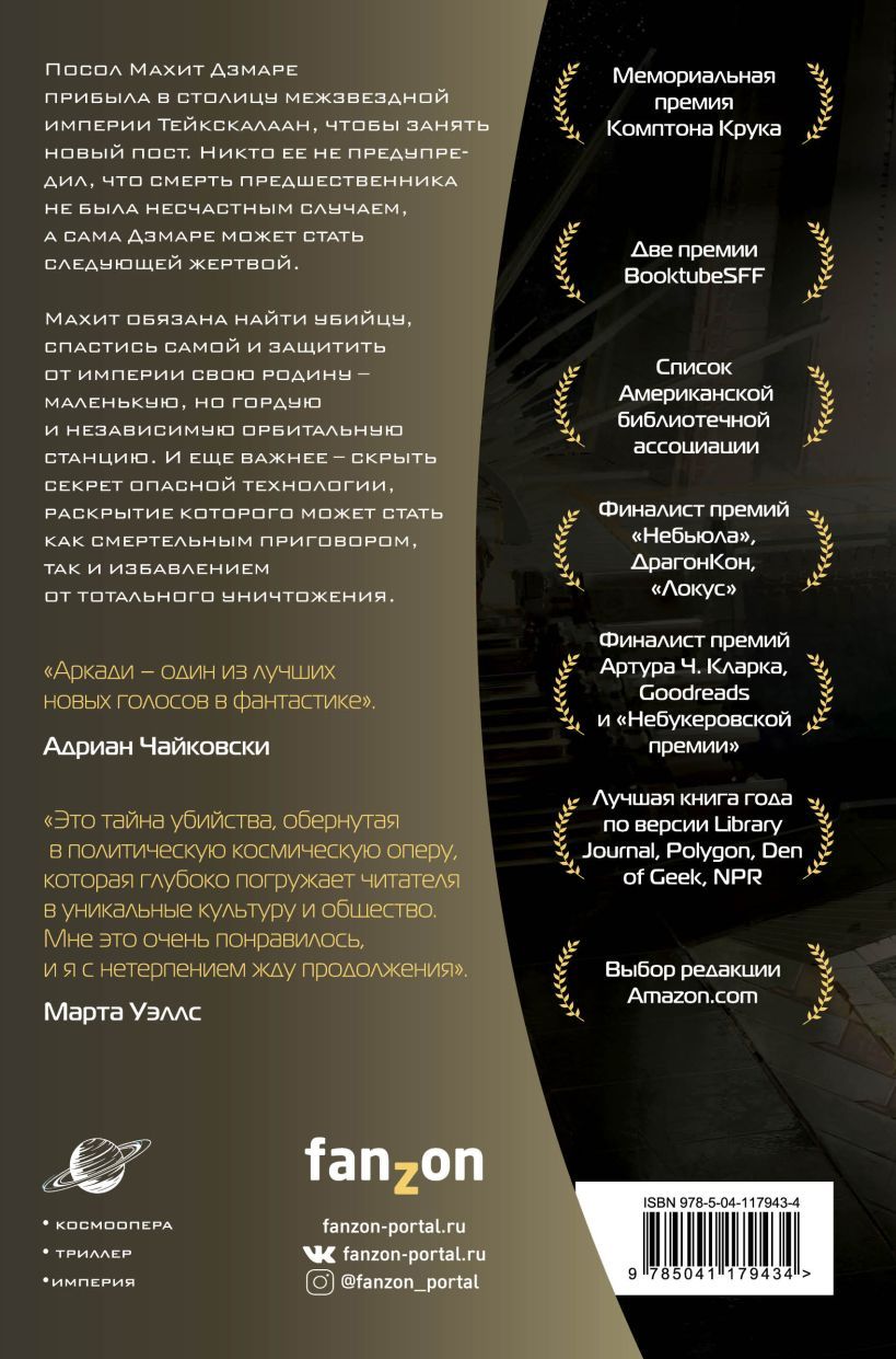 Mahit Dzmare arrives on a planet-city where everything is literally permeated with poetry, which drapes intrigue and rivalry. Imago, the memory of the former ambassador implanted in Mahit's brain, is supposed to help her unravel the tangle of connections, arrangements and scams of her predecessor, but a malfunction of the Imago apparatus jeopardizes everything. Now Mahit will have to figure it all out on her own.