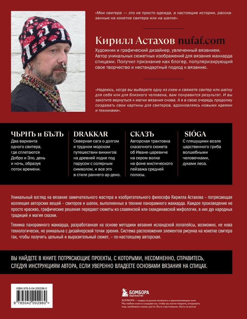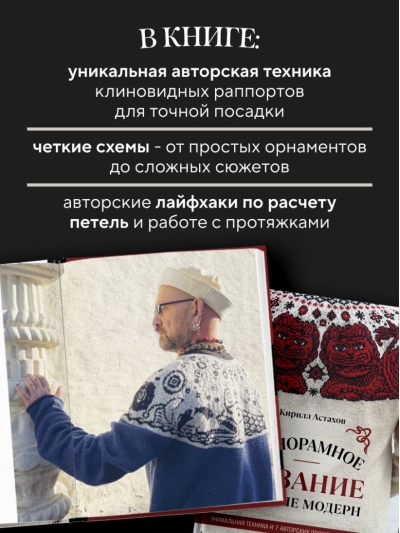 "Panoramic Knitting" is the first publication of its kind, where knitting becomes a form of artistic expression. Kirill Astakhov is a designer, philosopher, and master of the unique genre of panoramic jacquard, in which each piece becomes a myth captured in yarn.