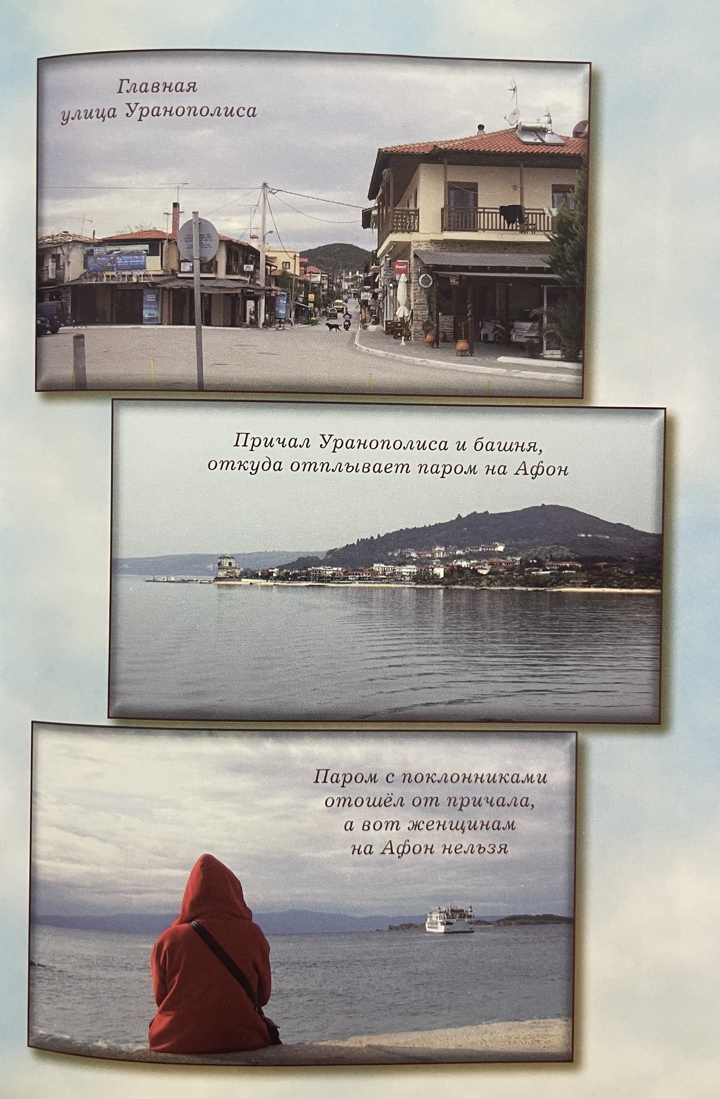 The book includes extensive historical material, recounting the history of Mount Athos.