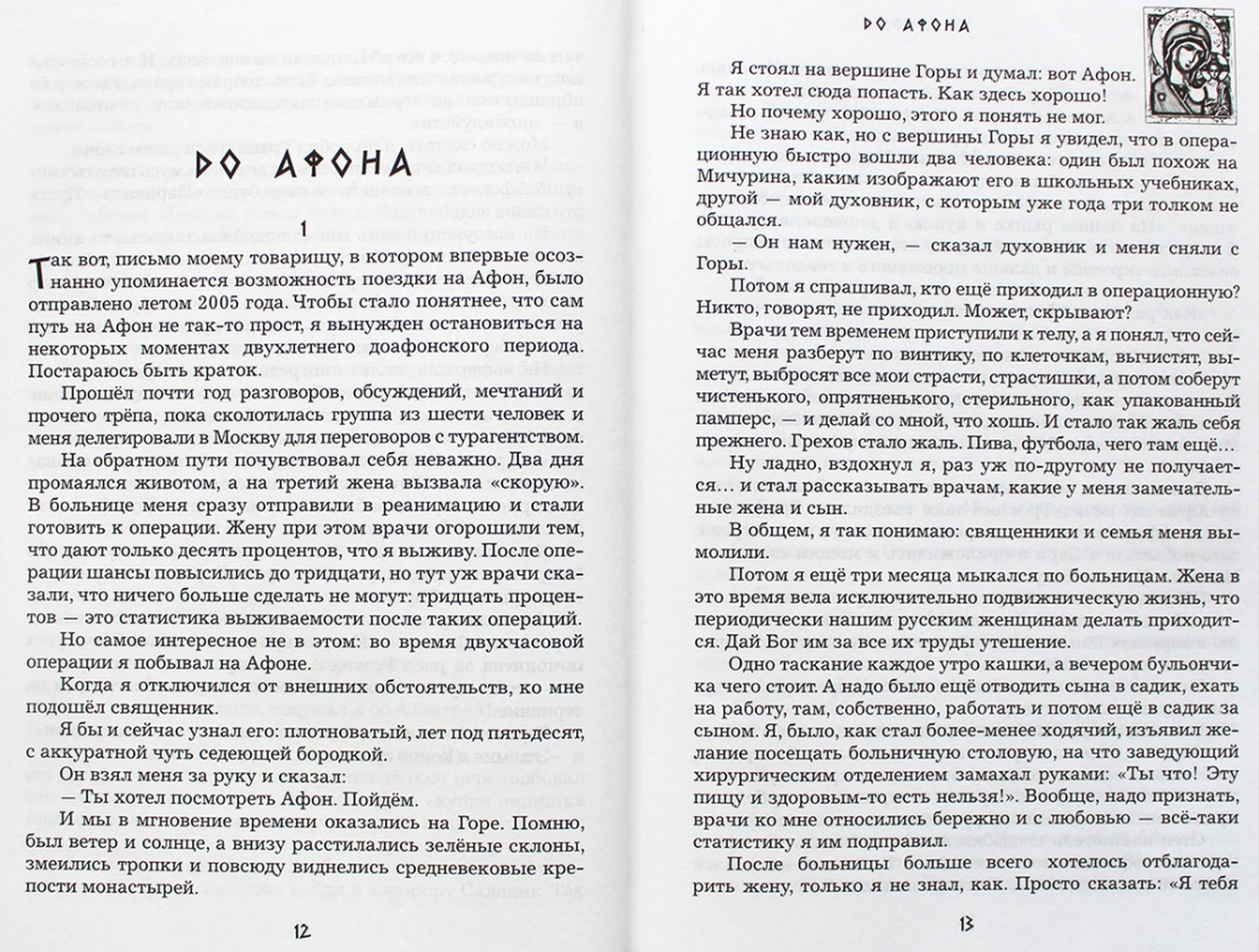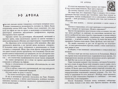 "Parakalo" translates from Greek as "greeting," "welcome." The book recounts the pilgrimage of two friends to Mount Athos. It is written vividly and captivatingly. In their search for a famous elder, the heroes visit many Athonite monasteries and sketes, meeting a wide variety of people. As they journey through the Holy Mountain with them, the reader senses how their worldview changes.