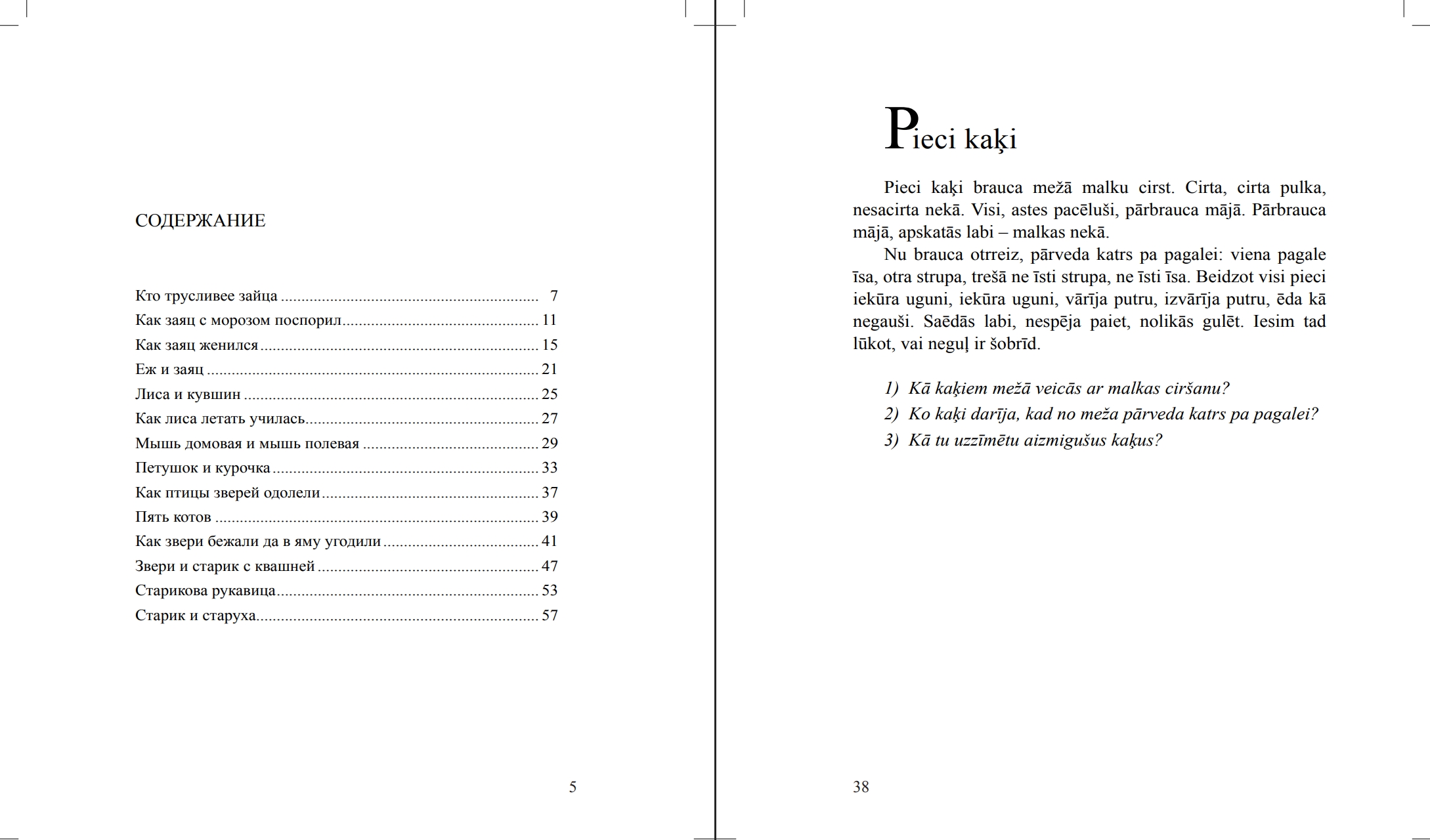 The poetic world of Latvian folklore in Latvian folk tales about animals with parallel Russian translation.