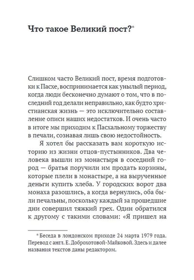 This book includes conversations and sermons of Metropolitan Anthony of different years, dedicated to the period of Great Lent, Holy Week and Easter of Christ.