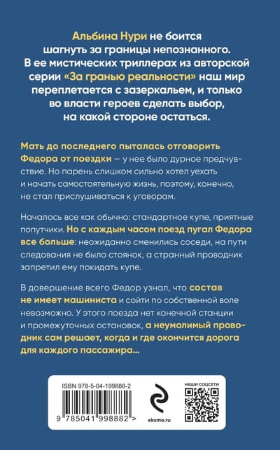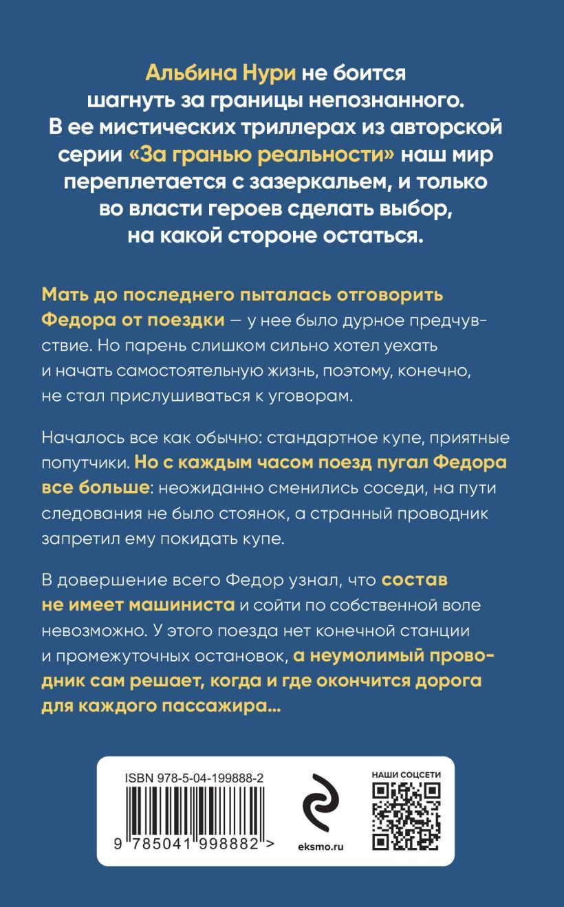 His mother tried to dissuade Fyodor from going until the last - she had a bad feeling. But the guy wanted too much to leave and start an independent life, so, of course, he did not listen to the entreaties. Everything began as usual: a standard compartment, pleasant fellow travelers. But every hour the train frightened Fedor more and more: unexpectedly changed neighbors, on the way there were no parking places, and a strange conductor forbade him to leave the compartment. To top it all off, Fyodor learned that the train had no driver and it was impossible to get off of his own free will. This train has no final station and intermediate stops, and the inexorable conductor himself decides when and where the journey ends for each passenger....