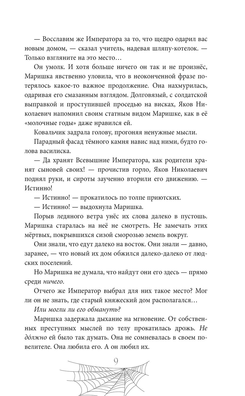 Orphans from all over the Empire are taken to a dilapidated princely house. But the house is strange and frightening. But Marishka seems to be the only one worried about it. Her voice is drowned in the voices of the others, in the sudden creaking of floorboards and the movement of things coming to life. The other orphans don't want to listen, because everyone knows that Marishka is a liar.