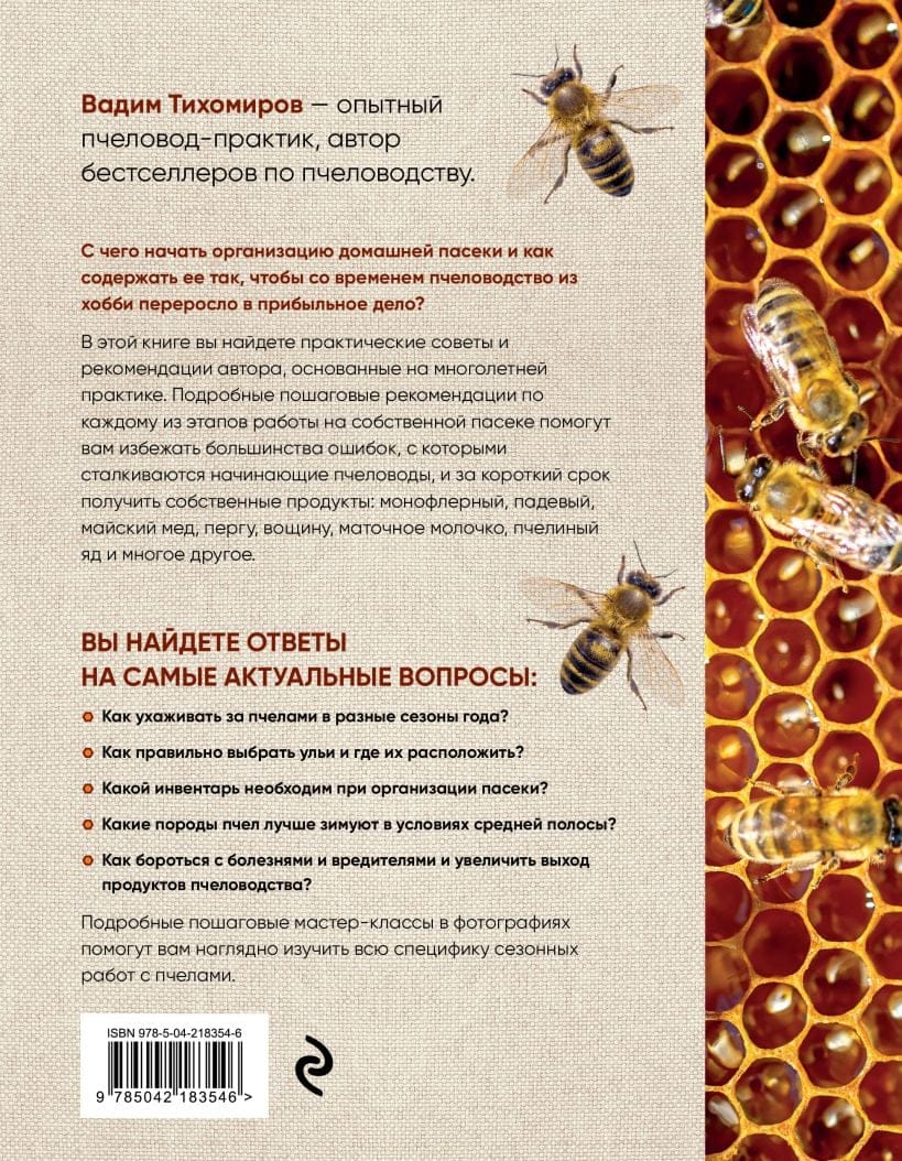 For those who dream of their own home apiary but don't know where to start or how to organize it so that beekeeping eventually grows from a hobby into a profitable business, this book will be their first aid! The author of this encyclopedia, experienced beekeeper Vadim Tikhomirov, shares his many years of personal experience as a beekeeper, reveals his "trade secret," and provides detailed, step-by-step recommendations for each stage of running your own apiary.