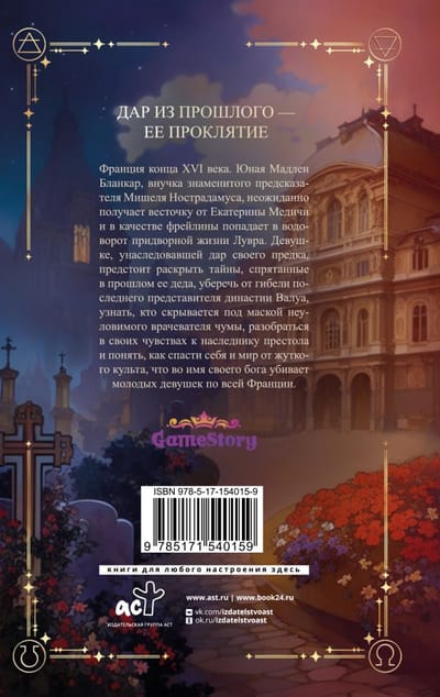 France at the end of the 16th century. Young Madeleine Blancard, granddaughter of the famous fortune teller Michel Nostradamus, unexpectedly receives a message from Catherine de Medici and as a maid of honor finds herself in the maelstrom of court life in the Louvre. The girl, who has inherited the gift of her ancestor, will have to uncover the secrets hidden in the past of her grandfather, to save the last representative of the Valois dynasty from death, to find out who hides under the mask of the elusive healer of the plague, to understand her feelings for the heir to the throne and understand how to save themselves and the world from the terrible cult that in the name of his god kills young girls throughout France.