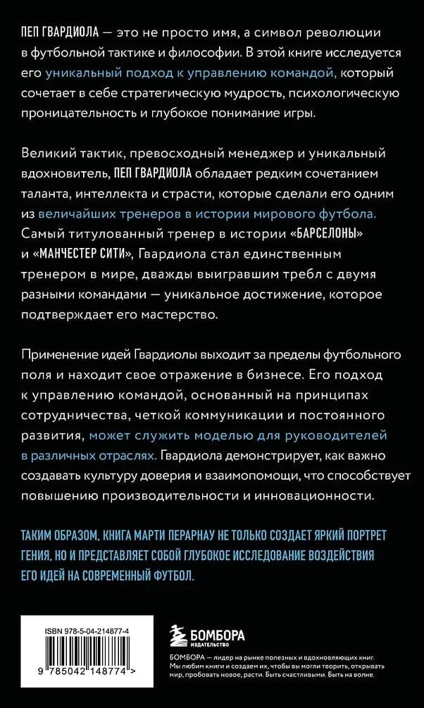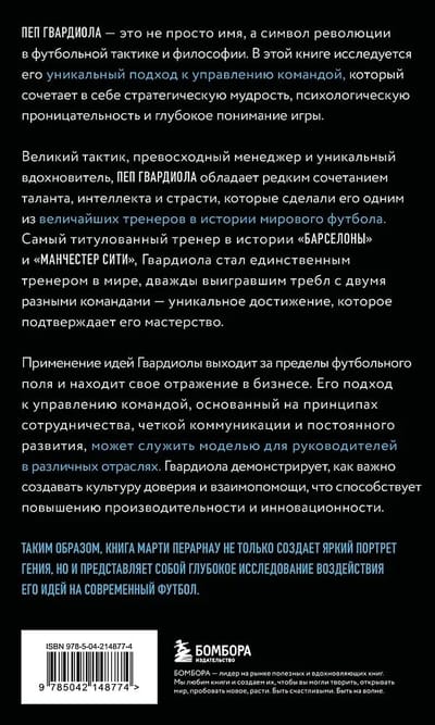 The application of Guardiola's ideas extends beyond the football field and is reflected in business. His approach to team management, based on the principles of collaboration, clear communication, and continuous improvement, can serve as a model for leaders across a variety of industries. Guardiola demonstrates the importance of creating a culture of trust and mutual support that fosters increased productivity and innovation. This is not only a portrait of a genius, but also a profound study of the influence of his ideas on modern football.