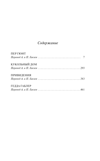 The collection includes four works: the dramatic poem "Peer Gynt," the play "A Doll's House," the family drama "Ghosts," and the play "Hedda Gabler."