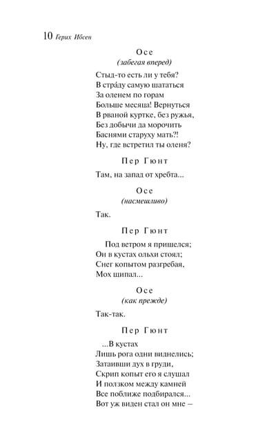 "Peer Gynt," one of Ibsen's most famous plays, was Ibsen's protest against romantic tendencies. Despite this, the play remained in the cultural consciousness as the embodiment of Norwegian romanticism, thanks to its scenes featuring Solveig and Edvard Grieg's music. In Russia, Ibsen was one of the "masterminds" of the early 20th century; his plays were staged at the Moscow Art Theater, and motifs from "Peer Gynt" resonated in the poetry of Alexander Blok. For Norwegians, "Peer Gynt" is as much a national work as Pushkin's "Eugene Onegin" is for Russians, and Goethe's "Faust" is for Germans.