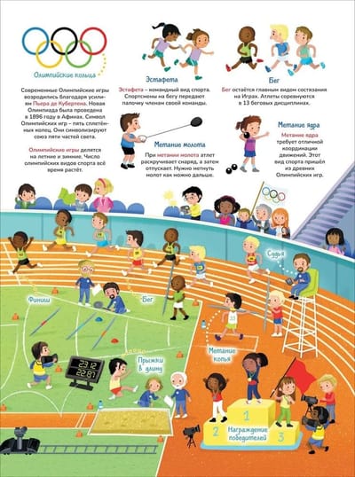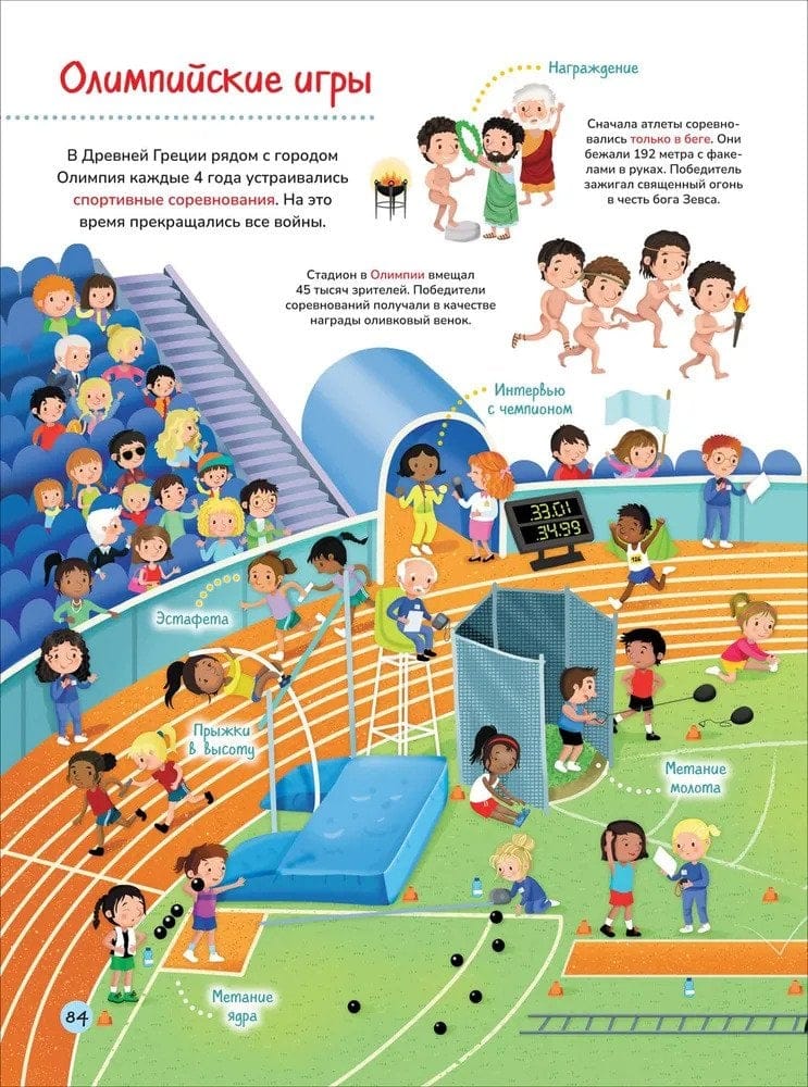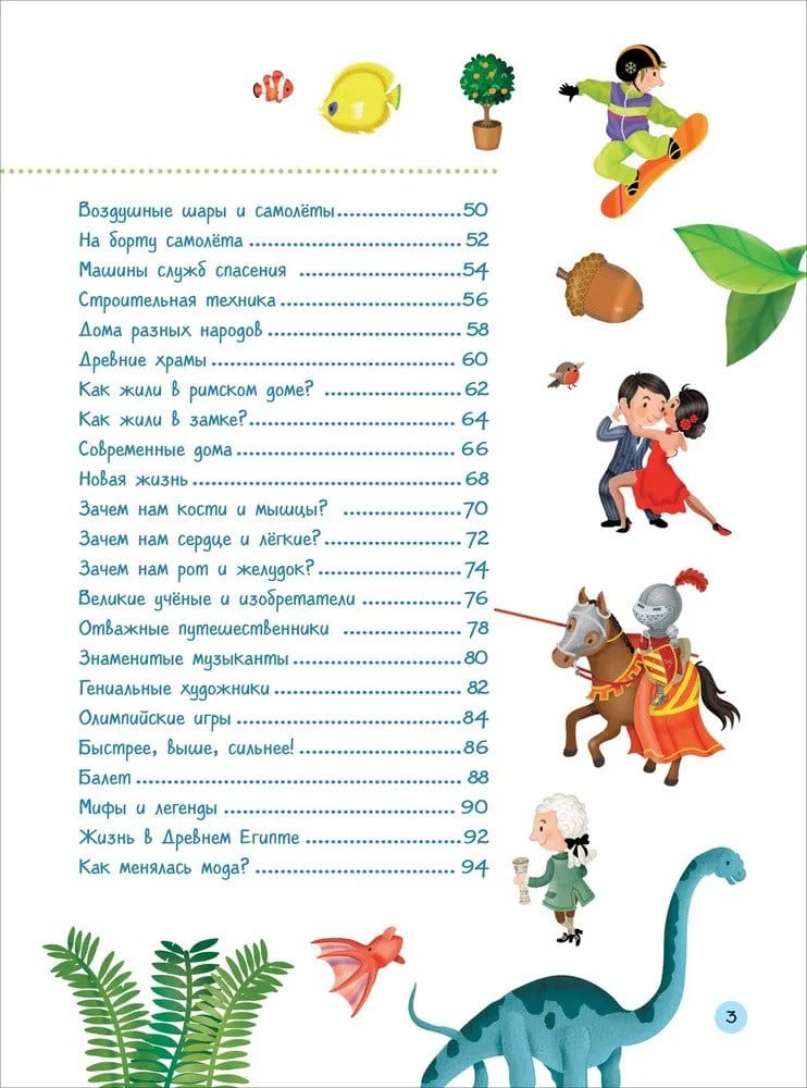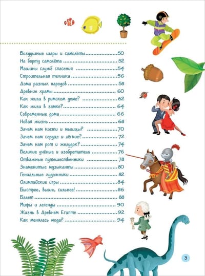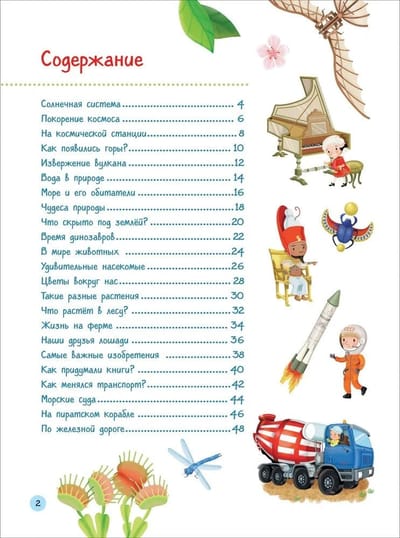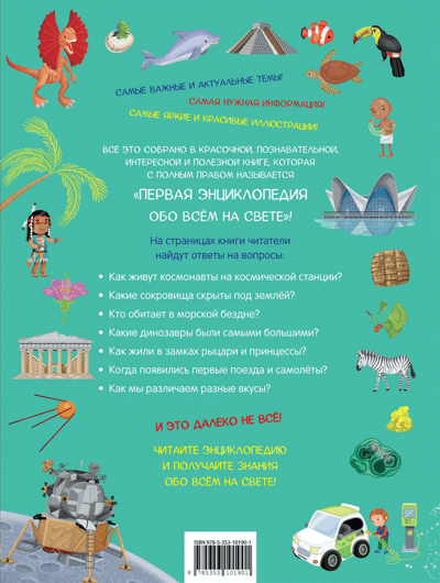 The colorfully illustrated encyclopedia will introduce children to geography, biology, astronautics, technology, architecture, anatomy, history, sports, art and many other areas of knowledge. Looking at the pictures with many details and reading the explanations to them, children will imperceptibly learn many new concepts and gain an understanding of various areas of science and everyday life.