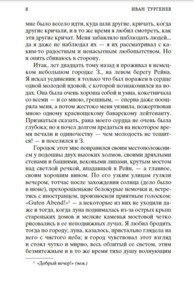 This collection includes Ivan Turgenev's stories: "Asya", "First Love", "Unhappy", "Spring Waters". The content of the book is determined not only by the chronological, but also by the internal connection of these works - the theme of love. Turgenev leaves man alone with the deep, the original and the eternal for a time, revealing in him an all-consuming need to love. However, Turgenev's stories also showed how little a person is capable of being the organizer of his own happiness and how "love has its sufferings at every age".