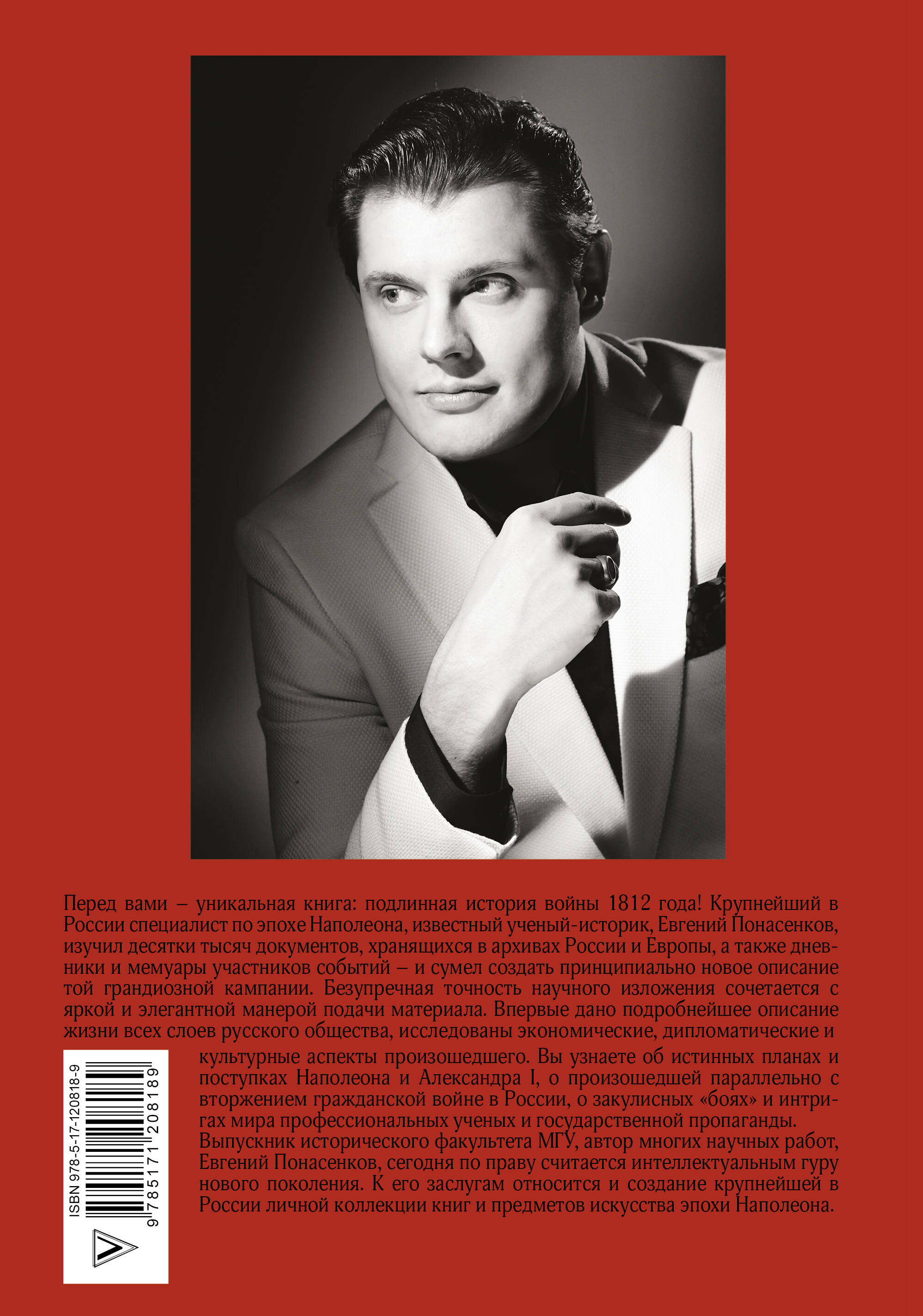 Evgeny Ponasenkov, Russia's largest expert on the Napoleonic era and a renowned scholar-historian, has studied tens of thousands of documents stored in Russian and European archives, as well as diaries and memoirs of the participants in the events, and has managed to create a fundamentally new description of that grandiose campaign. The impeccable accuracy of the scientific presentation is combined with a vivid and elegant manner of presenting the material. For the first time, a detailed description of the life of all strata of Russian society is given, and the economic, diplomatic and cultural aspects of what happened are explored. You will learn about the true plans and deeds of Napoleon and Alexander I, about the Russian civil war that occurred in parallel with the invasion, about the behind-the-scenes "battles" and intrigues of the world of professional scientists and state propaganda. Yevgeny Ponasenkov, a graduate of the Faculty of History at Moscow State University and author of many scientific works, is today rightfully considered an intellectual guru of the new generation. He is also credited with creating the largest personal collection of books and art objects from the Napoleonic era in Russia. The third edition has a new chapter and additional illustrations.