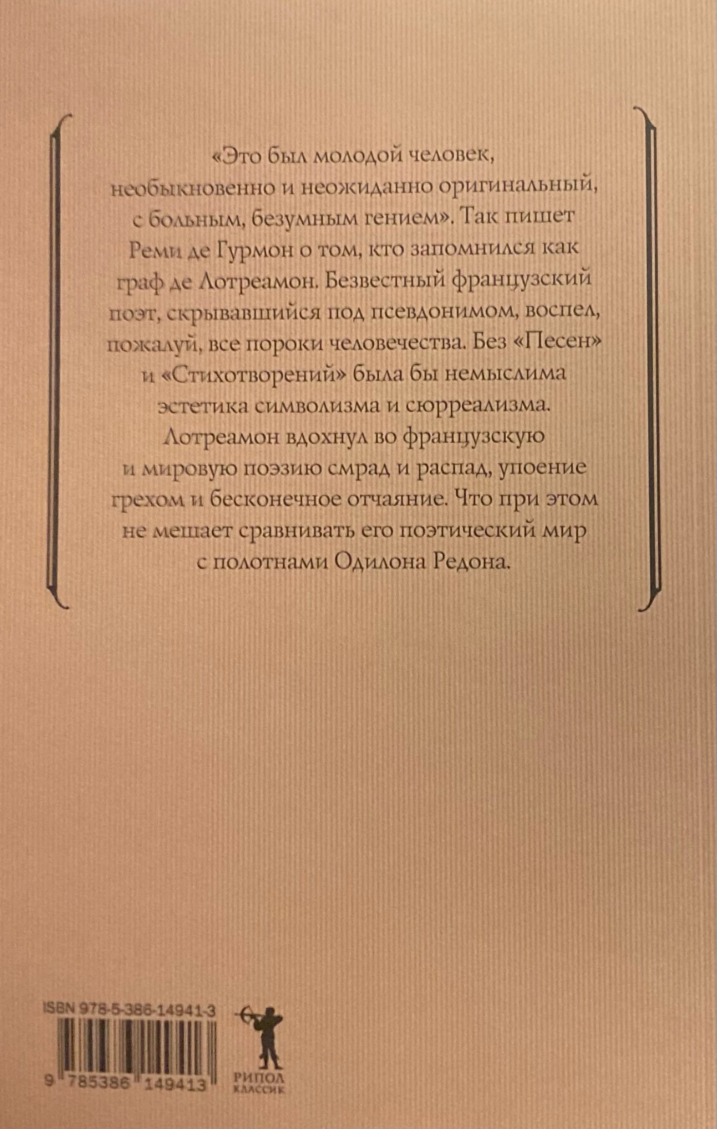 "He was a young man, singularly and unexpectedly original, with a sick, mad genius." So writes Remy de Gourmont of one who is remembered as the Comte de Lautréamont. The anonymous French poet, hiding under a pseudonym, sang, perhaps, all the vices of mankind. Without "Songs" and "Poems" would be unthinkable aesthetics of symbolism and surrealism. Lautréamont breathed into French and world poetry stench and decay, intoxication with sin and endless despair. This does not prevent us from comparing his poetic world with the paintings of Odilon Redon.
