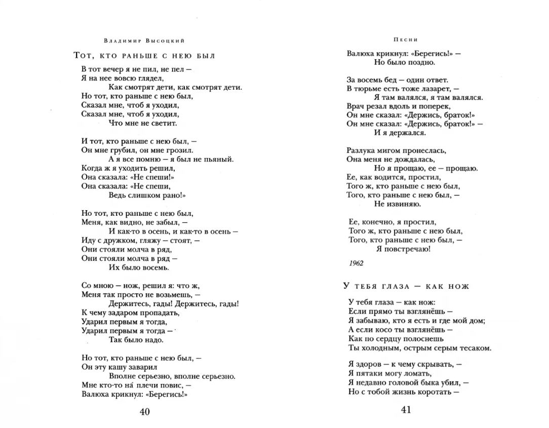 Vysotsky's confessional verse, associated with a popular sense of justice, is addressed to the whole of Russia with its past and present. His soulful responsiveness and spiritual upsurge, exacting word and crying conscience were reflected in hundreds of poems, songs and ballads. Vladimir Vysotsky is a phenomenal phenomenon in Russian culture. He belongs to those few poets who were given to feel the rhythm of time, involving millions of readers and listeners in the force field of his work.