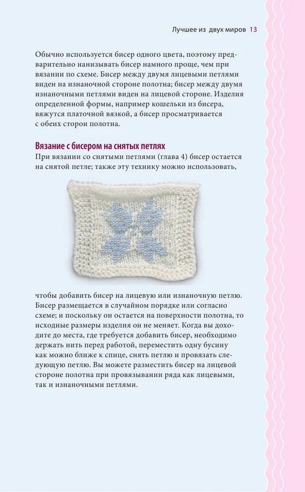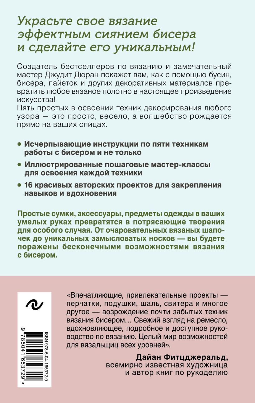 The perfect reference book, five techniques for working with beads directly in the knitting process and nothing extra. Step-by-step instructions with colorful illustrations, gorgeous projects to exemplify the techniques, a comprehensive overview of beads and other materials, and a list of tools needed. This book will be at your fingertips to come to your aid in a moment of difficulty if you are an experienced craftsman, or to teach from scratch if you are a beginner. Concise, clear, beautiful!