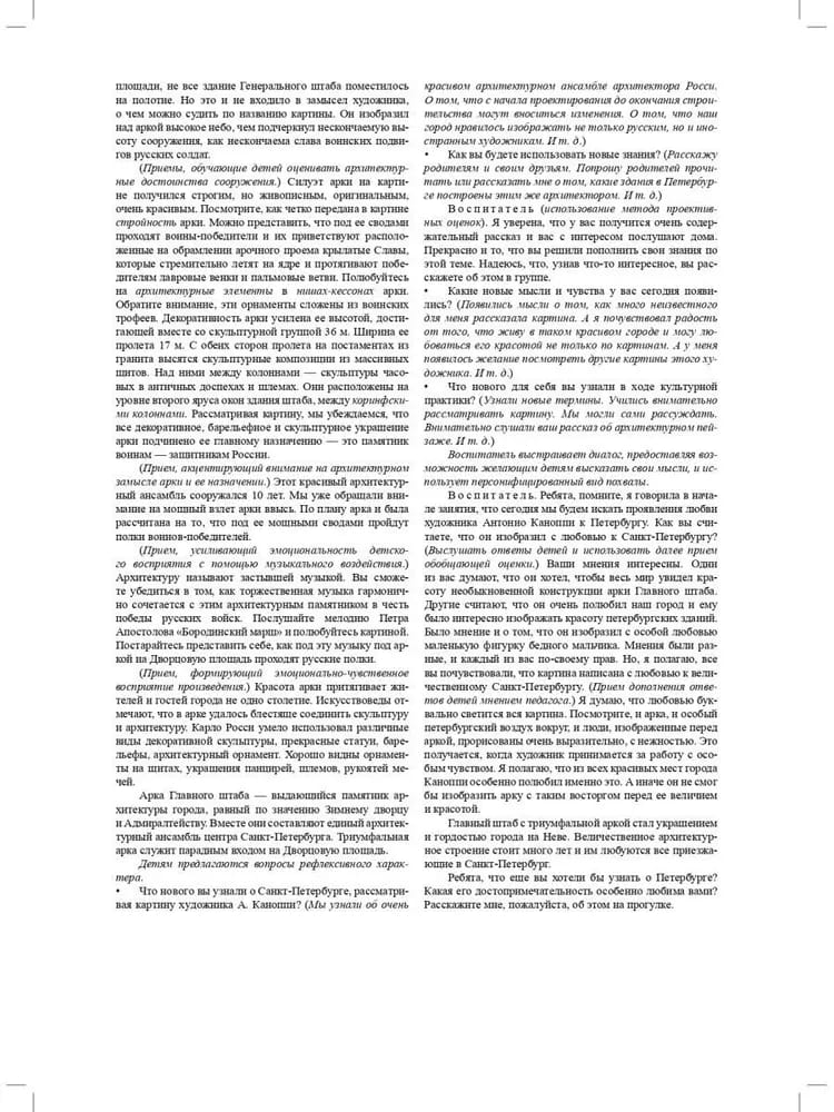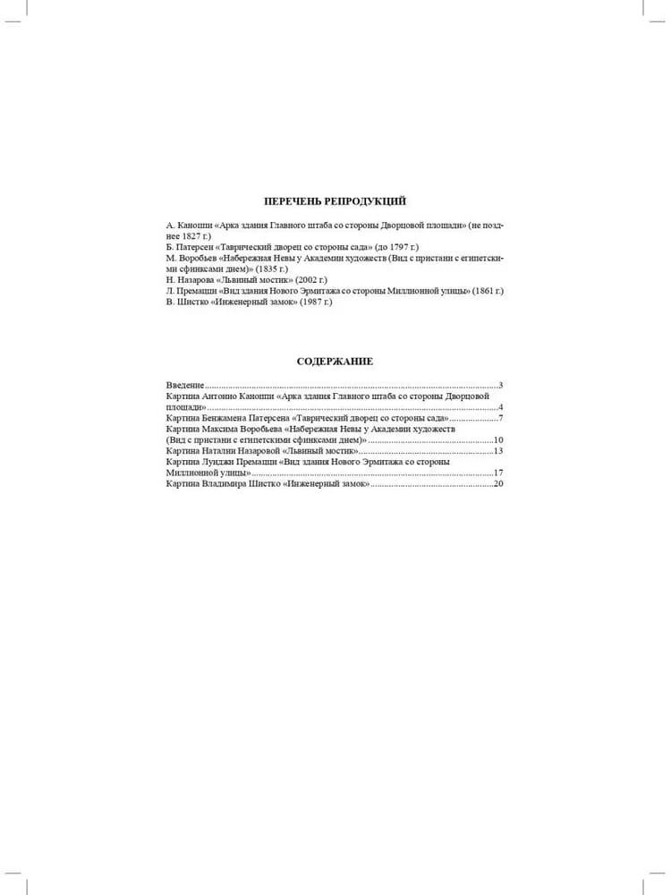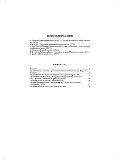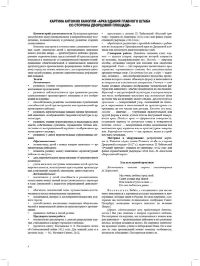 The proposed cultural practices have been developed in accordance with the requirements of the Federal State Educational Standard of Preschool Education. They combine the following tasks: developing cultural and historical knowledge of 5-7 year old children about the Northern capital; fostering interest in the genre of urban landscape and developing its correct perception; culturological education of children by introducing them to paintings by artists of the 18th-19th centuries. The outlines vary in structure, but are united by the fact that they are urban landscapes of St. Petersburg. During the classes, children become acquainted not only with the unique architecture of one of the most beautiful cities in the world, but also with art history terms and concepts necessary for understanding the genre of urban landscape. The manual is addressed to preschool educators, parents, students of pedagogical educational institutions, teachers of additional education, and governesses.