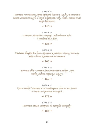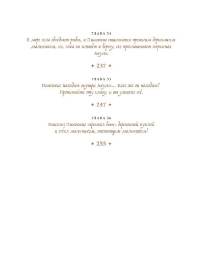 The tale of Pinocchio is one of the most famous and favorite stories in world literature. Although for most Russian children it has been replaced by Pinocchio, as well as many cartoons and movie interpretations. However, the original has a completely different plot and a completely different philosophy, and there are even biblical references. It is a story of growing up, growing from a creature of meaninglessness into a loving son who risks his life to save his father. It's a story about humanity. No matter how mischievous Pinocchio is a mischievous slacker, no matter what kind of trouble he gets into, he still has a good heart and an unattainable dream - to become a real boy. And readers of all generations love him with all their hearts and wish his dream to come true.