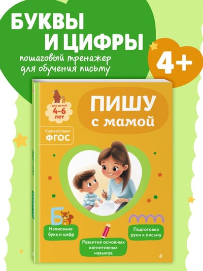 This educational book, designed for mother and child to work with together, will be a reliable aid in preparing for school. Simple tasks are easy to complete at home, on a walk, or on the go. Learning through a fun and engaging game will help children not only develop key skills but also feel confident. These writing exercises are ideal for children aged 4, 5, and 6, as they take into account their learning styles and interests.