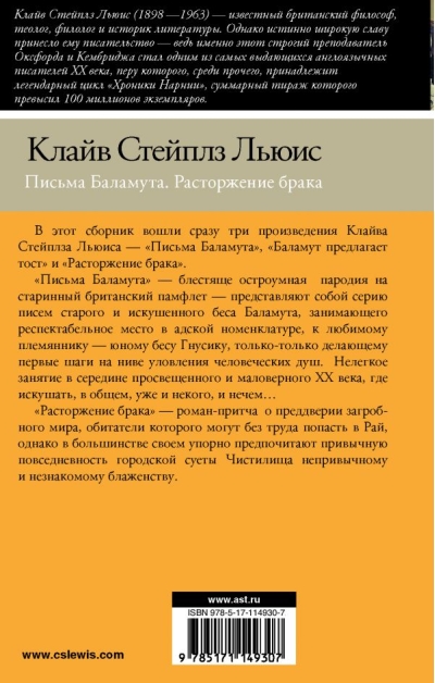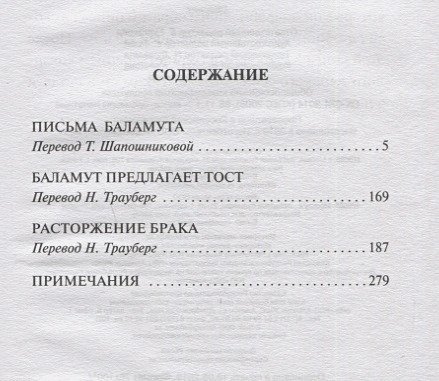 "Letters of Balamut" - a brilliantly witty parody of the old British pamphlet - is a series of letters from an old and sophisticated demon Balamut, occupying a respectable place in the infernal nomenclature, to his favorite nephew - a young demon Gnusik, just making his first steps on the field of catching human souls. Not an easy occupation in the middle of the enlightened and little faithful XX century, where to tempt, in general, already and no one, and nothing ... "The dissolution of marriage" - a novel-parable about the eve of the afterlife, the inhabitants of which can easily get to Paradise, but most of them stubbornly prefer the usual daily routine of urban bustle Purgatory unfamiliar and unfamiliar bliss.