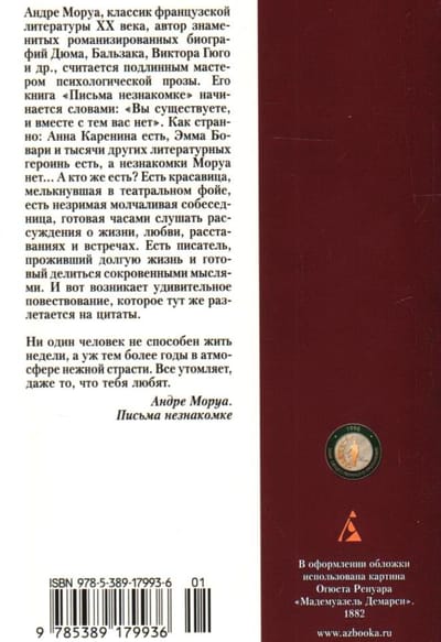 André Maurois, a classic of 20th-century French literature, the author of famous novelized biographies of Dumas, Balzac, Victor Hugo and others, is considered a true master of psychological prose. His book “Letters to an Unknown Woman” begins with the words: “You exist, and at the same time you do not.” How strange: Anna Karenina exists, Emma Bovary and thousands of other literary heroines exist, but Maurois’s Unknown Woman does not… And who does? There is a beauty who flashed in the theater foyer, there is an invisible silent interlocutor, ready to listen for hours to reasoning about life, love, partings and meetings. There is a writer who has lived a long life and is ready to share his innermost thoughts. And so an amazing narrative emerges, which immediately flies apart into quotes.