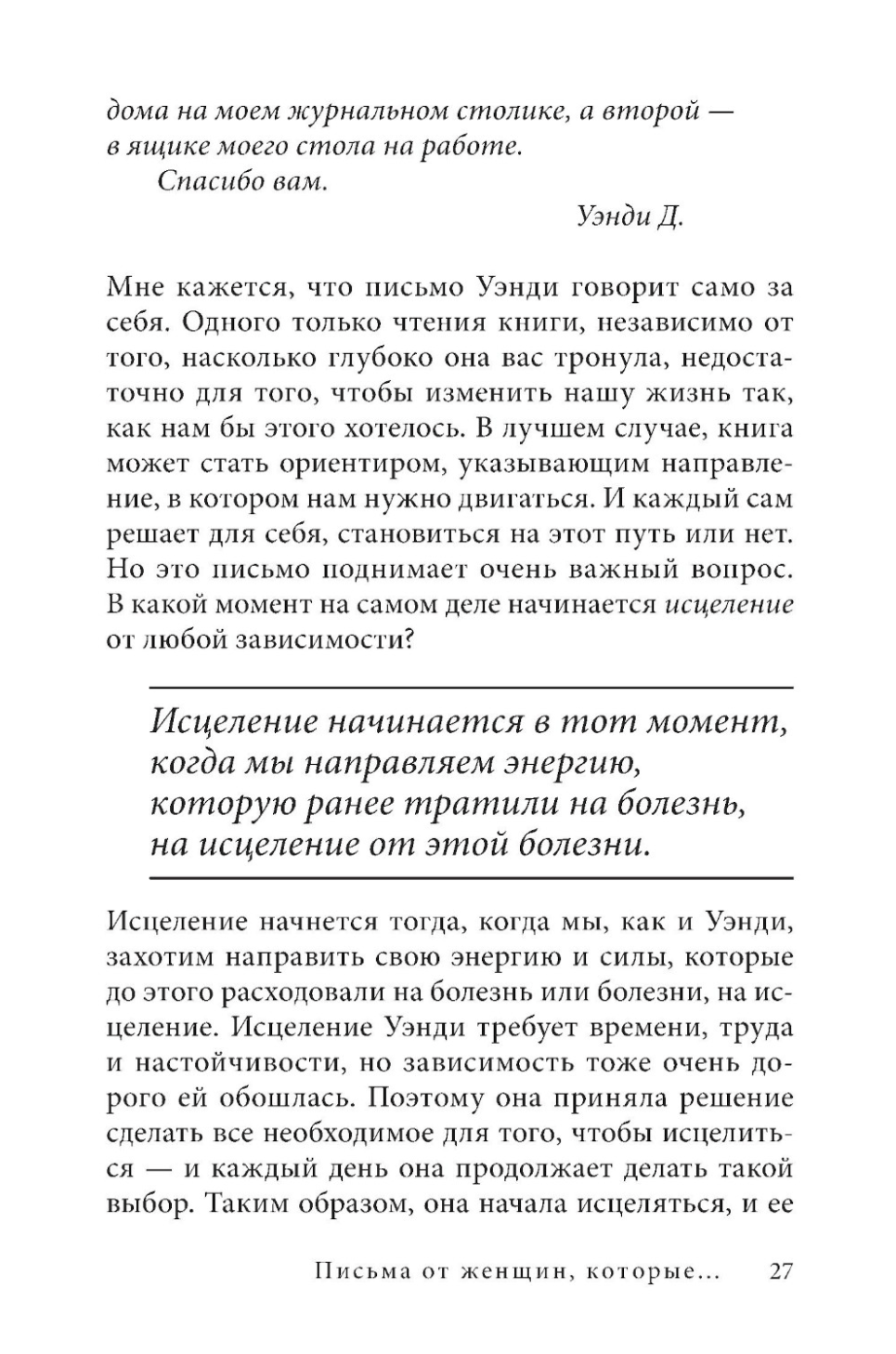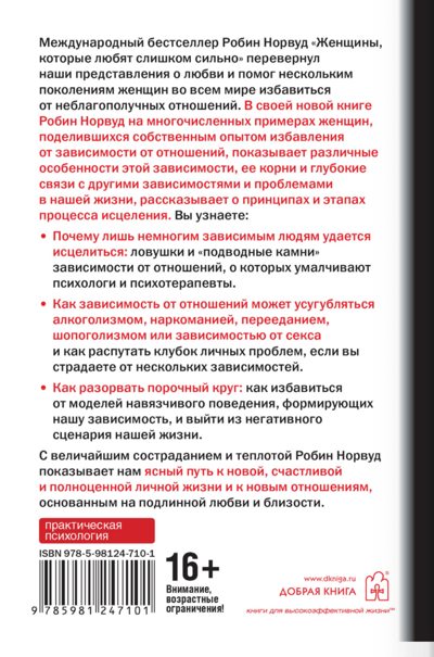 Robin Norwood's international bestseller Women Who Love Too Much has changed our understanding of love and helped several generations of women around the world get rid of dysfunctional relationships. In her new book, Robin Norwood uses numerous examples of women who shared their own experiences of getting rid of relationship addiction to show the various features of this addiction, its roots and deep connections with other addictions and problems in our lives, and talks about the principles and stages of the healing process.