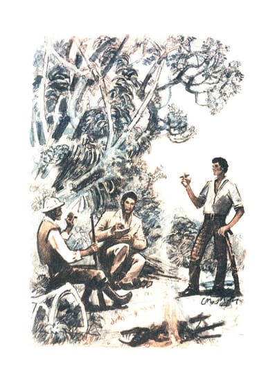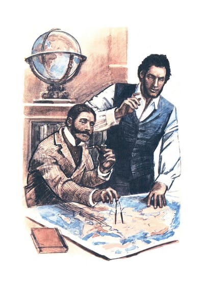 Illustrations in this edition are made by a wonderful artist Peter Ivanovich Lugansky. He was a great admirer of Jules Verne's work. In the post-war years Lugansky's illustrations decorated Soviet editions of such famous books as "Twenty Thousand Leagues Under the Sea", "The Fifteen-Year-Old Captain" and "The Floating Island". During the artist's lifetime, six editions of "Captain Grant's Children" were published, and all the drawings in them differed. In this and other books by Jules Verpa before domestic readers opened an unfamiliar and tantalizing world, which acted brave heroes and tireless pioneers, making their way through the dense jungle, furrowing the seas on their sailing ships and flying over Africa in a hot air balloon. All of these mesmerizing images could be seen firsthand thanks to Lugansky's talent. Where and how did he research the nature he was painting? Studied the fashion of the XIX century? Flipped through old albums? Or creative imagination allowed him to faithfully reproduce pictures of life, which he did not see with his own eyes? After all, Peter Ivanovich never left the borders of his homeland. He was born in 1911, graduated from one of the oldest art schools in Ukraine - a kind of analog of Stieglitz School in St. Petersburg. Then he worked in the Leningrad "Uchpedgiz". After the war, book design became the main creative work for the artist. He illustrated works by Kaverin, Belyaev, Stevenson and Mein Reid. Yet his favorite writer has always been Jules Verne.