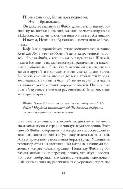 A fascinating and insightful novel that gives an insight into the atmosphere in modern China. Phoebe is a simple girl from a deep province, she came to Shanghai with the intention of finding some work, but with dreams of something much bigger. Gary is a former country boy who became a pop star but never got used to his new position. Justin is the heir to a wealthy Malaysian family and his goal is to consolidate the family real estate empire, but he runs into an unsolvable problem in Shanghai. Inhoy is a successful businesswoman who has escaped from her native Malaysia, where she was just a girl from a good family.... And a narrator who guides everyone's lives according to a plan only he knows.
