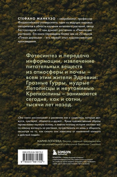 In Edrevia, hundreds of trees live and clan together. Among them there are wise Chroniclers, serious and conscientious, keeping a thousand different stories, and no one knows more than they do. There are the tall and formidable Gurras, the indefatigable Krepkospins. Photosynthesis and the transfer of information, extracting nutrients from the atmosphere and soil - all these things the people of Edrevia have been doing for hundreds of years. They build this world day by day - if only we humans would let them.