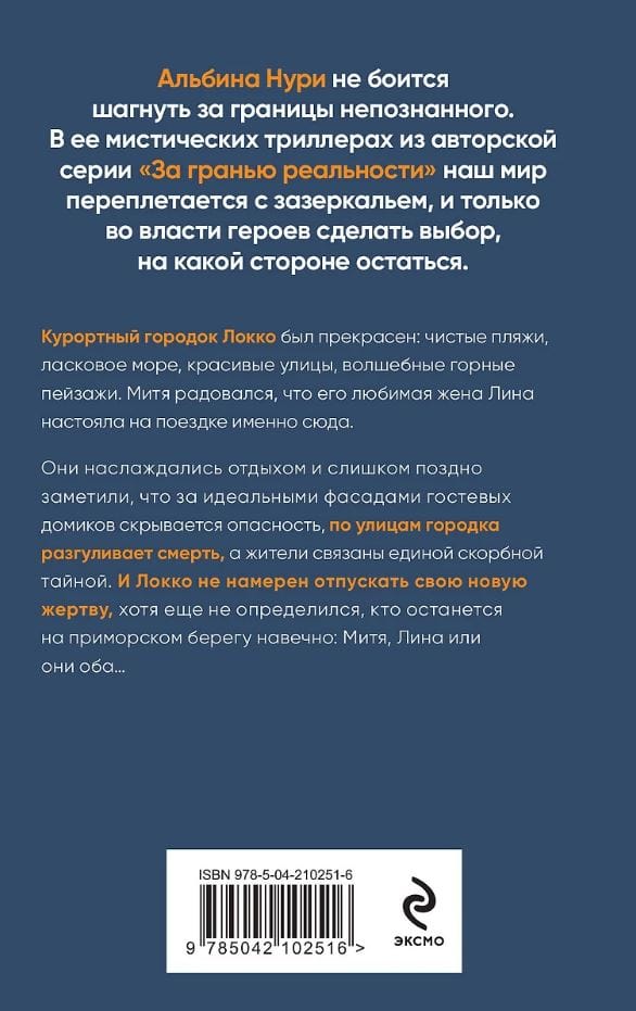 The resort town of Locke was beautiful: clean beaches, gentle sea, beautiful streets, magical mountain landscapes. Mitya was glad that his beloved wife Lina insisted on a trip here. They enjoyed the rest and too late noticed that behind the ideal facades of guest houses there is danger, death is walking along the streets of the town, and the residents are bound by a single mournful secret. And Locke does not intend to let go of his new victim, although he has not yet decided who will remain on the seaside forever: Mitya, Lina or both of them...
