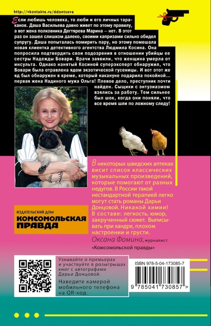 If you love a man, you must also love his personal cockroaches. Dasha Vasilyeva has long lived by this rule, but the wife of Colonel Degtyarev Marina - no. This time he went too far: his caprices greatly offended his other half. Dasha tried to reconcile the couple, but this was prevented by a new client of the detective agency Lyudmila Kosina. She asked to confirm her suspicions about the killer of her sister Nadezhda Bovary. Doctors said that the woman died of a stroke. However, a super-expert hired by Kosina discovered that Bovary had been poisoned by the poison of an exotic caterpillar. And now the same poison was found in the cream, which the day before gave the deceased ... the first wife of Nadia's husband Olga! Piece of cake, the culprit is almost found. The detectives enthusiastically set to work. The stronger was the shock when they realized that they had been following a false trail all along!
