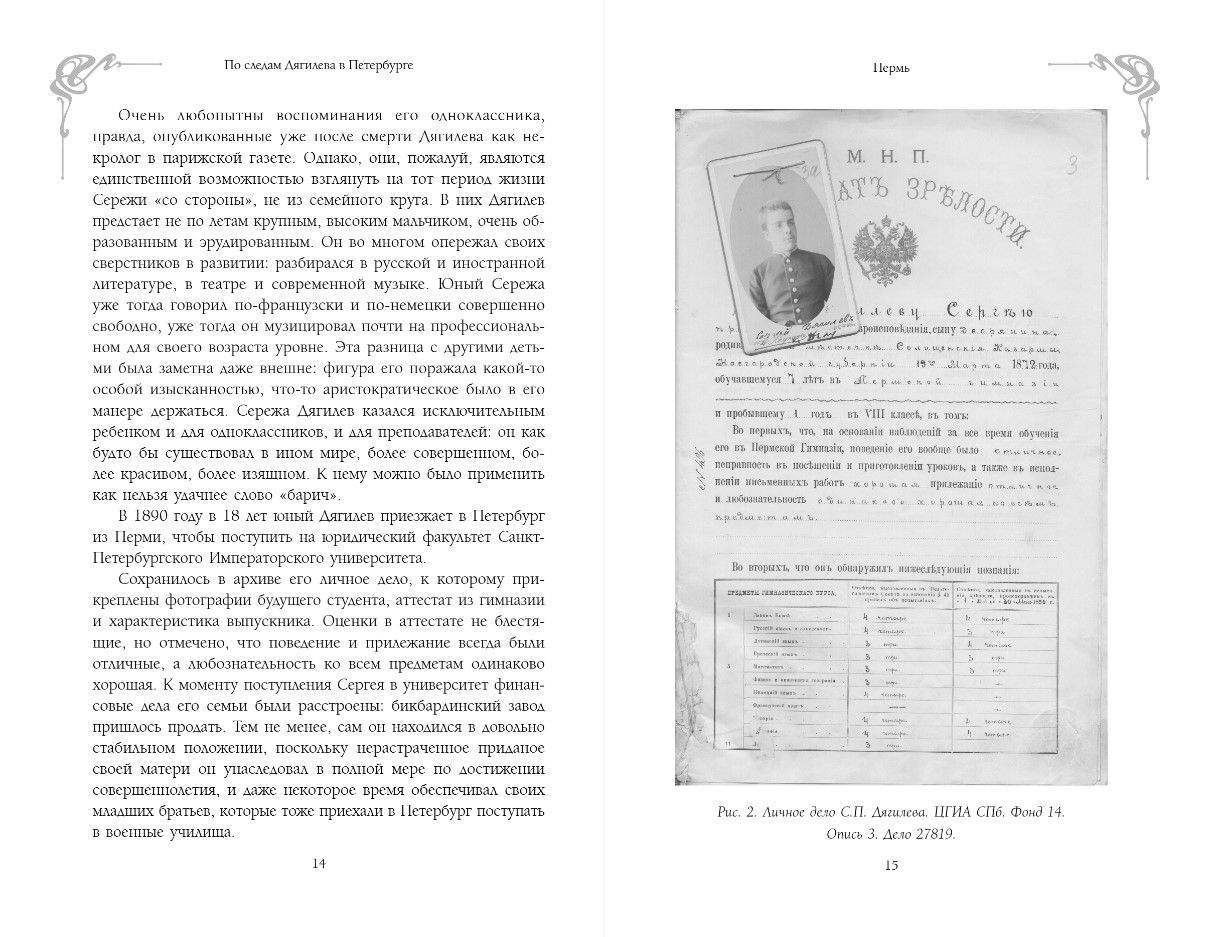 Walking along the streets of St. Petersburg with this book, you will find out where the apartment was located where Sergei Diaghilev grew up, in which house the idea of creating the “Russian Seasons” appeared, which became a big news item for all of Europe. You will be able to see the houses of the northern capital, where exhibitions of such great artists as Serov, Levitan, Vrubel and many others were once held before their works were sent to other countries along with Sergei Diaghilev.