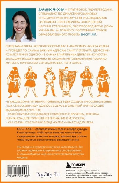 The pages of the book are permeated with the atmosphere of St. Petersburg of that time. Here, every street and building is full of inspiration and creativity of a real producer of the early 20th century. Studying archival documents and walking along routes compiled in the footsteps of the great impresario, you will find yourself in the epicenter of the cultural life of the early last century, feel the pulse of the era and traces of those daring innovations that left an indelible mark on world painting, ballet and other forms of art.