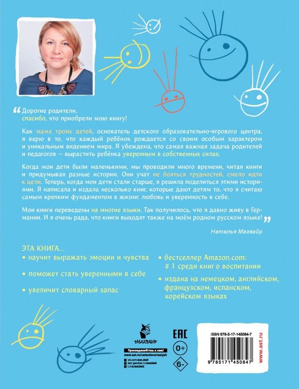 By discussing simple stories and expressive pictures from this book, you will be able to explain to children what happens to them when they are afraid, angry, sad, happy, offended .... And the ability to understand themselves - the basis of success in life! Natalia Maguire (www.maguirebooks.com), a mom of three children and also a successful businesswoman, came up with this useful book. The book has been translated into several languages and became an Amazon.com bestseller.