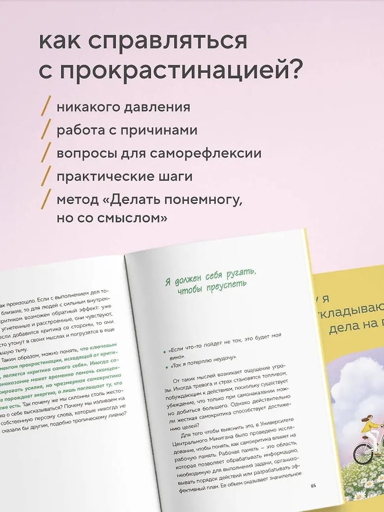 - shows how to turn procrastination into an opportunity to take care of yourself;