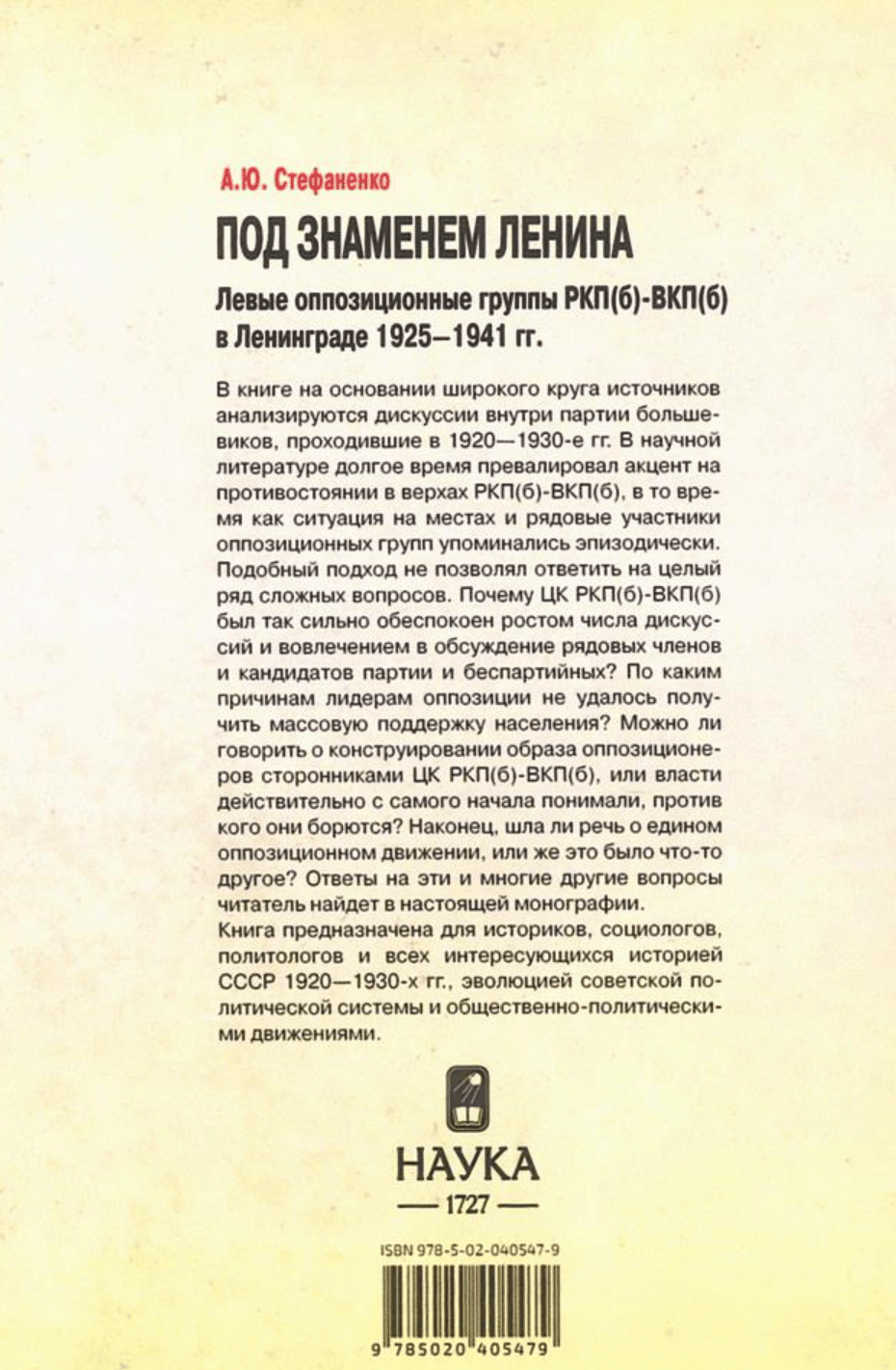 Under the Banner of Lenin. Left Opposition Groups of the RCP(b)-VKP(b) in Leningrad. 1925-1941.