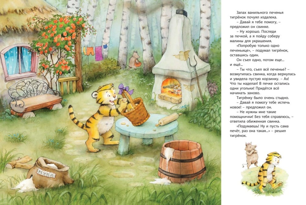 If you can't do it yourself, call your friends. Together with them any task is easy! At first, the little naughty tiger cub was only interfering with the forest animals preparing birthday presents for the bear. But then he came up with such a present that both the bear and all his friends were happy!