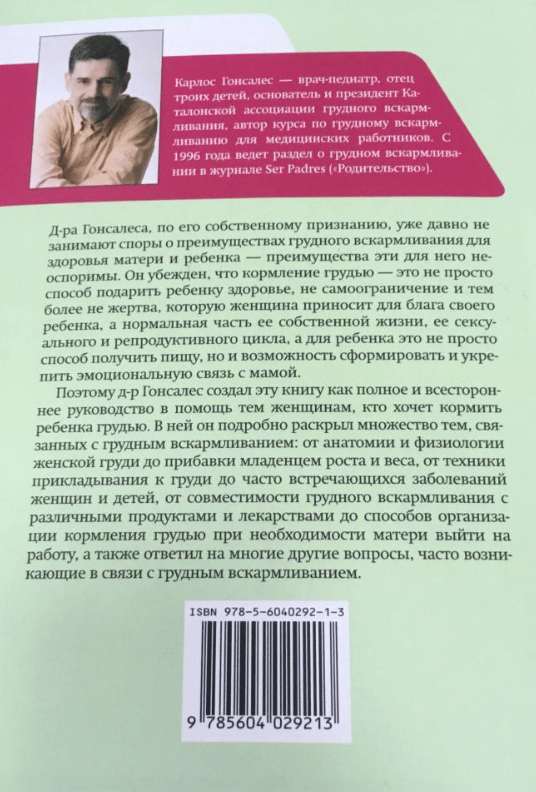That's why Dr. Gonzalez has created this book as a complete and comprehensive guide to help those women who are looking for an answer to the question of how to breastfeed a baby. Dr. Gonzalez's book will not only detail how to breastfeed your baby, but also very lucidly justify why it should be done that way. The book is subtitled "A Guide to Breastfeeding", and this is very important: the book talks not only and not so much about the benefits of breastfeeding, but answers, perhaps, all the pressing practical questions about how to breastfeed a baby (you can see this by reading the table of contents). The author reveals in detail many topics related to breastfeeding: from the anatomy and physiology of the female breast to the growth and weight gain of the baby, from the technique of breastfeeding to common diseases of women and children, from the compatibility of breastfeeding with different foods and medicines to ways to organize breastfeeding when the mother needs to go to work, as well as answered many other questions that often arise in connection with the topic of how to feed a baby.