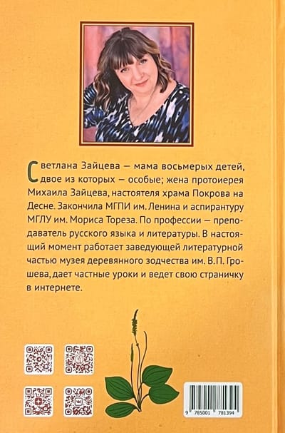 The book includes stories from the wife of an Orthodox priest, a mother of eight children, two of whom are special. How to come to terms with the birth of a "special" child? How not to lose faith in God and people? The author shares her experience with readers, touches on the complex issues of our time with sparkling humor and optimism, with a firm belief in the Providence of God.