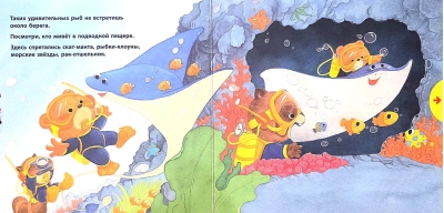 Teddy Bear dons his scuba gear and flippers and sets off on an underwater expedition with his friends. Come join us! Just look at all the unusual creatures here! There are stingrays with large wings, a crab with powerful claws, and a fish with a flashlight on its head lurks in the deepest depths. And what is that? Could it really be... a real sunken ship filled with treasure? Let's board it!