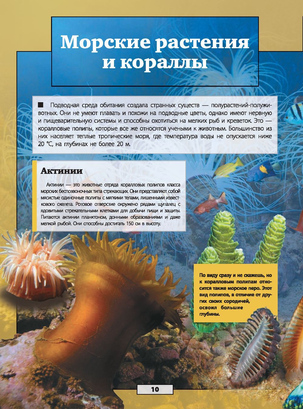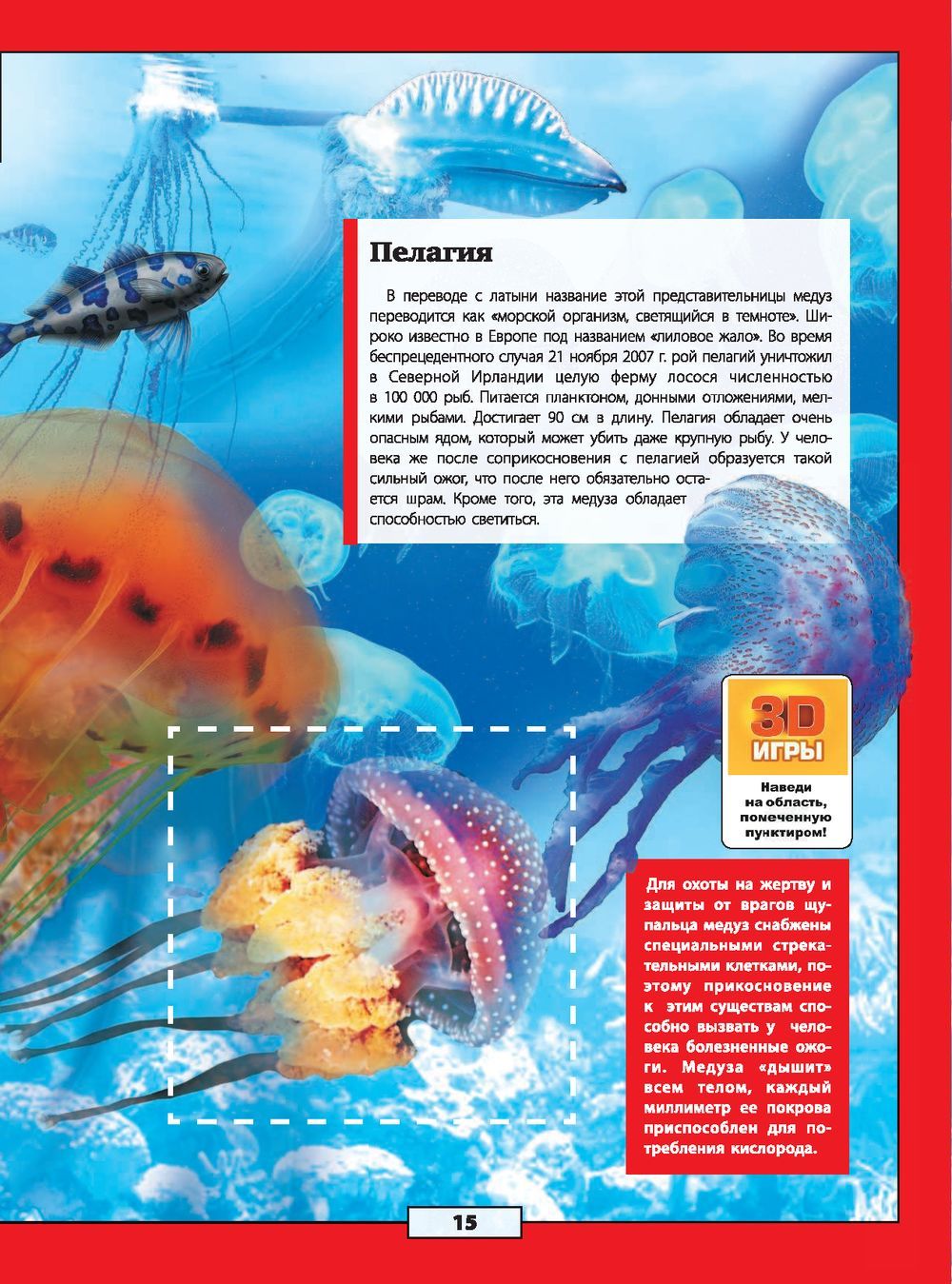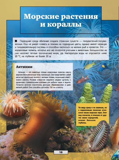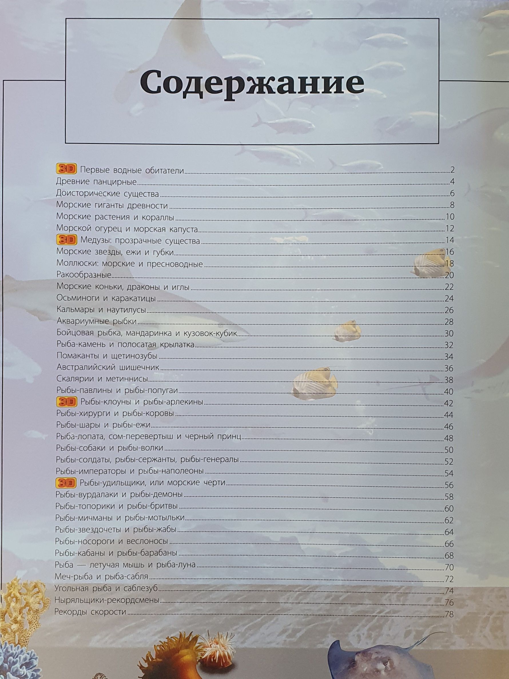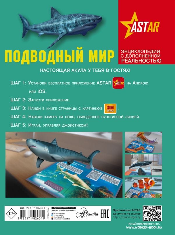 The world's oceans cover most of our planet. Just imagine how many amazing plants and animals are hidden in its depths! But have you ever seen them all in person? Probably not! But it is quite possible, if you open this book! After all, you have in your hands a unique edition with augmented reality (AR) in the format of interactive 3D games. This means that you will not just get acquainted with the underwater world by reading the text and looking at the illustrations, but will see its inhabitants in motion and volume: an electric stingray at your command will release a current discharge, a hammerhead fish will attack the screen of your smartphone, and a clownfish will obediently feed from your hands. Realistic visual and sound special effects accompanying the game will make reading this book even more exciting.
