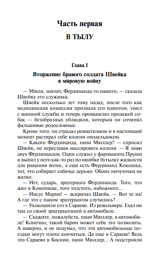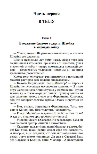 "The Lives of the Brave Soldier Schweik" - this is perhaps one of the most original books in the history of prose of the twentieth century. A book that can equally be perceived as one big, full of absolutely inimitable folk slyness "soldier's tale" - or as a classic work of literature of the past century. Funny? Homerically funny! But very often the true essence of "Schweik" - a desperate and powerful call to "lay down your arms and think" - peeks through the windy and reckless humor of the "garrison anecdote"....