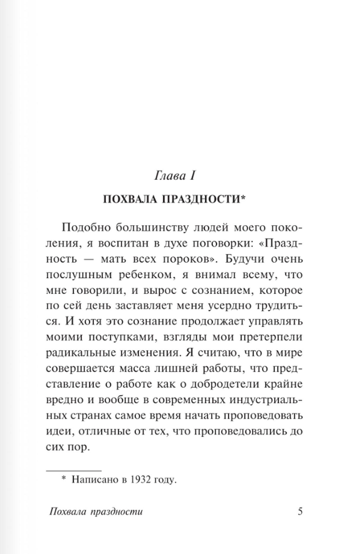 In his collection "In Praise of Idleness," the great British philosopher, with his characteristic wit, erudition, and logic, discusses the pressing issues of his time—issues that, surprisingly, remain no less pressing today, in the twenty-first century. And how can one not recall the classic who once said: "The more things change, the more things remain the same"?