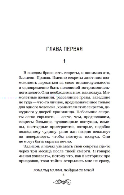 Aaron Decker's life is irreversibly changed one December morning when he learns that his wife, Allison, has been murdered. Obsessed with her ghost, Aaron is sorting through her belongings when he finds a receipt from a motel in another part of the country. Unable to cope with his grief, the widower sets out on a journey to find out what Allison was doing in the weeks before her death. But he is unprepared for the dark secrets his wife was hiding from him, for the death and horrors that were present in her other, secret life. With each new encounter, plunging into an incomprehensible and frankly supernatural story, Aaron goes more and more crazy and wants only one thing - to find out the truth, even if it means risking his own life.