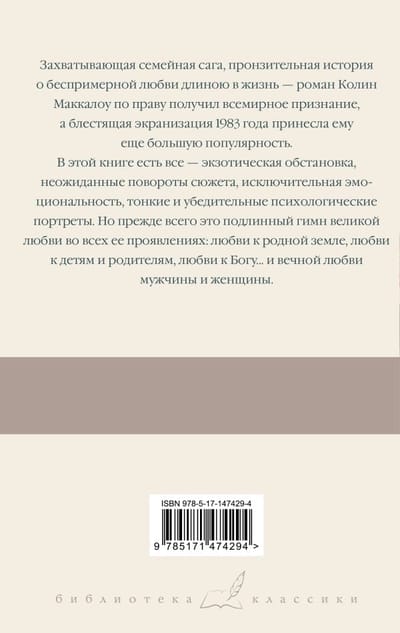 A gripping family saga, a poignant story of unparalleled lifelong love - Colin McCullough's novel has rightly received worldwide acclaim, and the brilliant 1983 film adaptation brought it even greater popularity.
