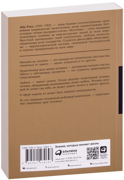 The Virtue of Egoism is a collection of articles written by Ayn Rand over the years and united by one theme: the defense of the concept of “reasonable selfishness” as the ethical basis of a free capitalist society. The author argues vividly and convincingly that only within the framework of a system that prioritizes the rights of the individual and reason can people freely develop and find happiness without being enslaved by dictators, the state and others. Only such a system can be recognized as moral and corresponding to human nature.